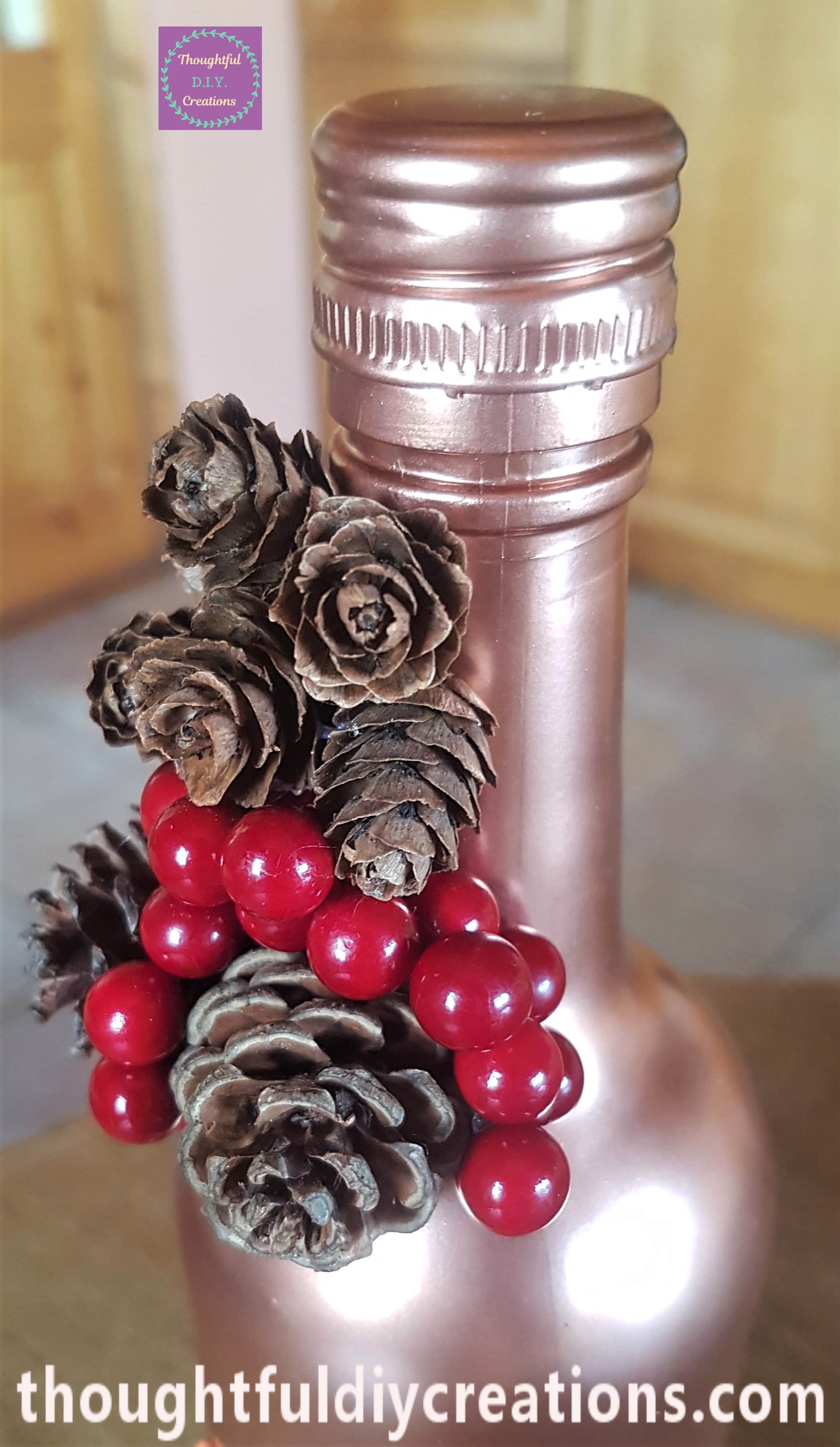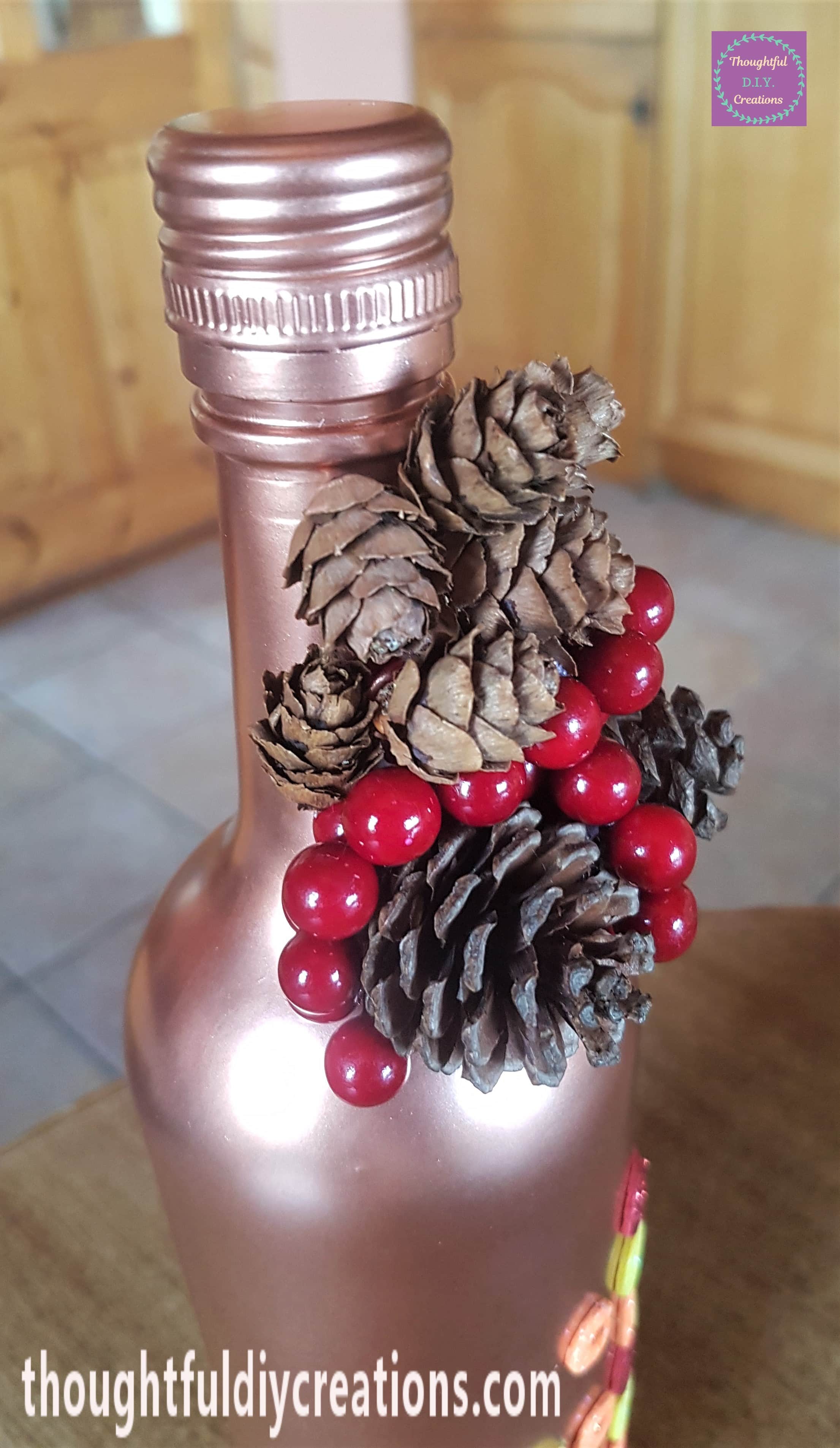 The Images below show each side of the Bottle with Pine Cones and Berries attached.