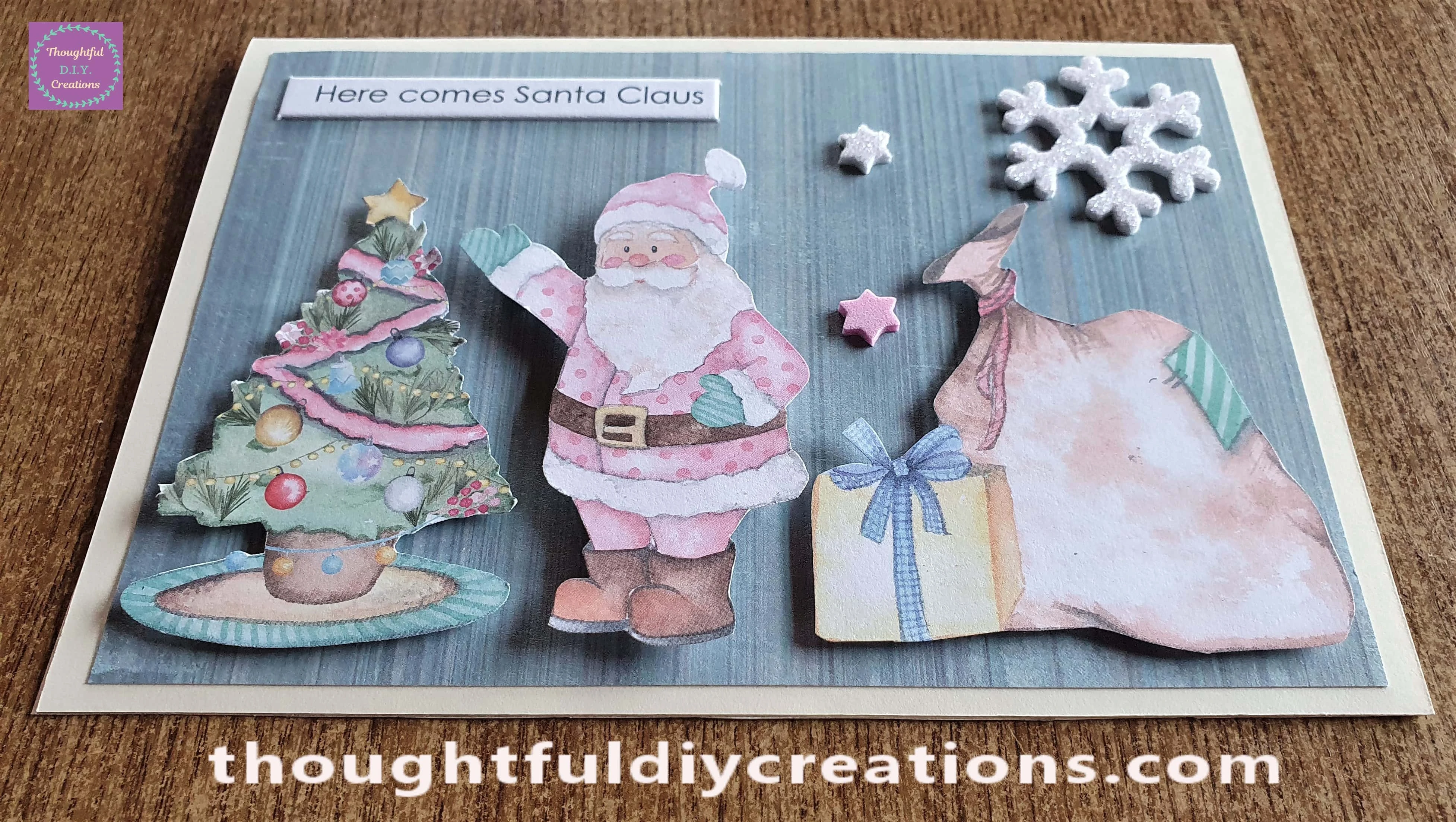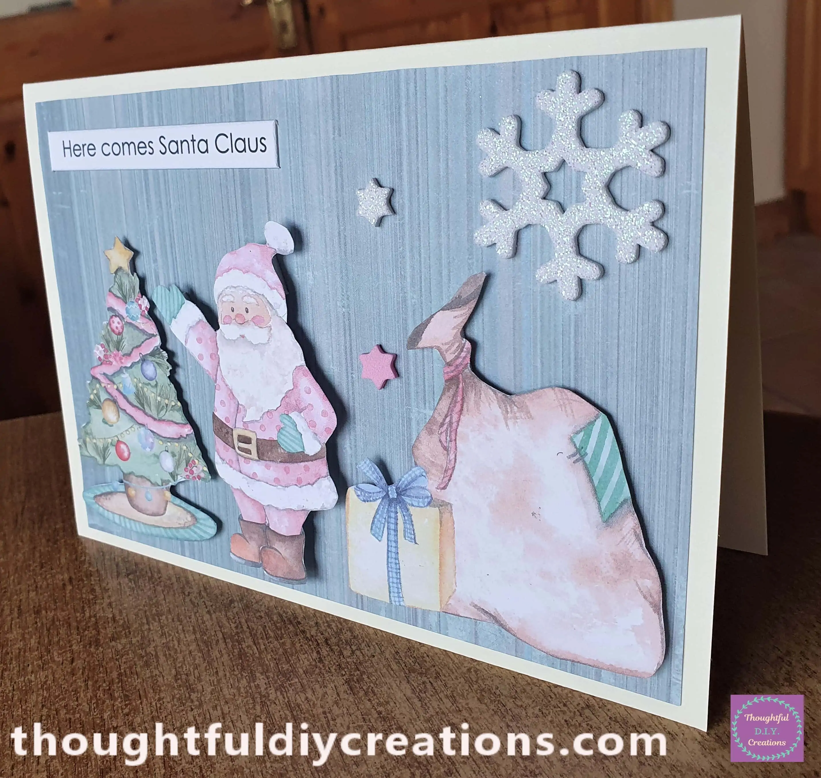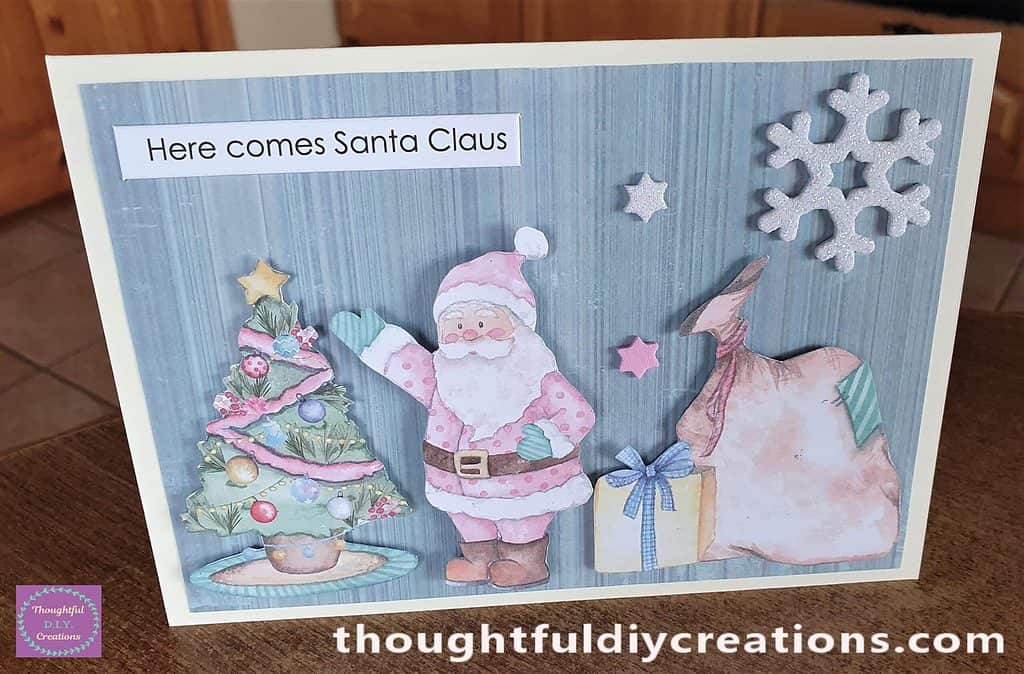 I bought a 6″ x12″ ‘Christmas Rose’ Paper Pad by ‘Stamperia’ recently. It is full of Pastel Christmas Images to Cut out for Cards and Crafts. I will be Cutting out the smaller Santa from this Page.