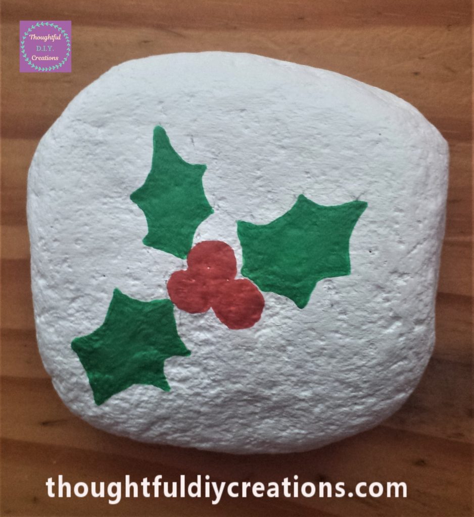 I drew 3 holly leaves and berries onto the stone using a pencil.