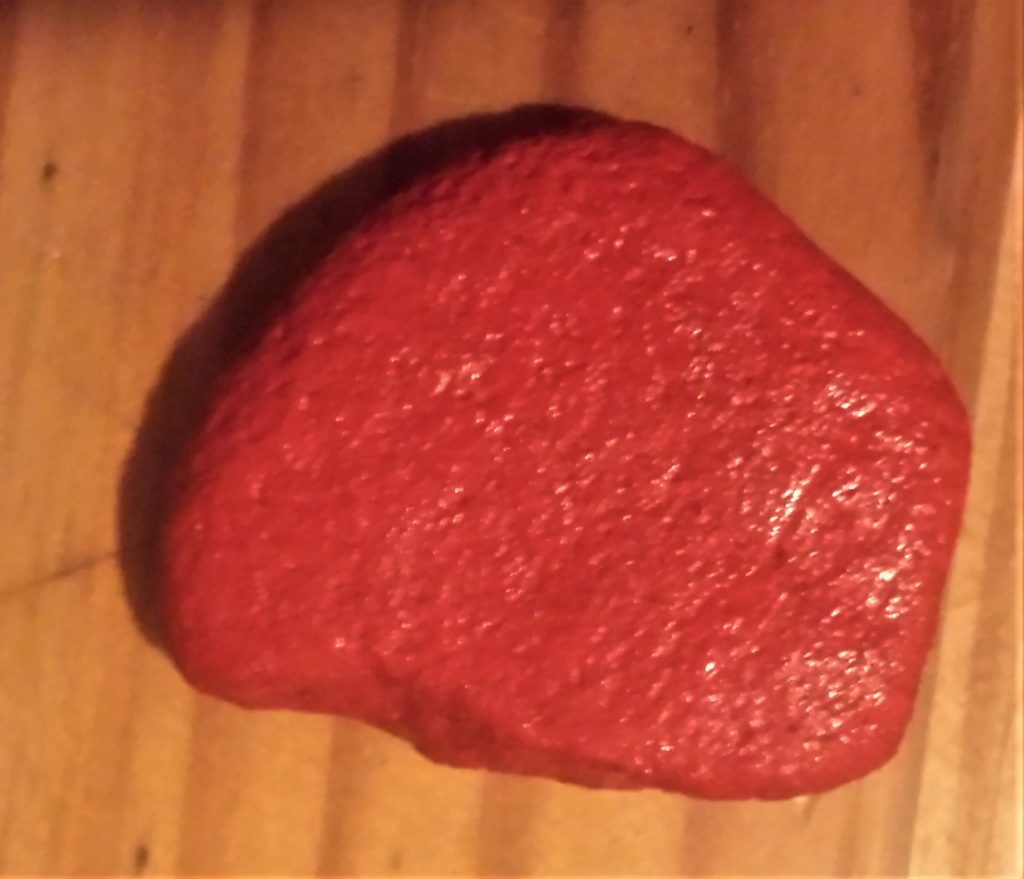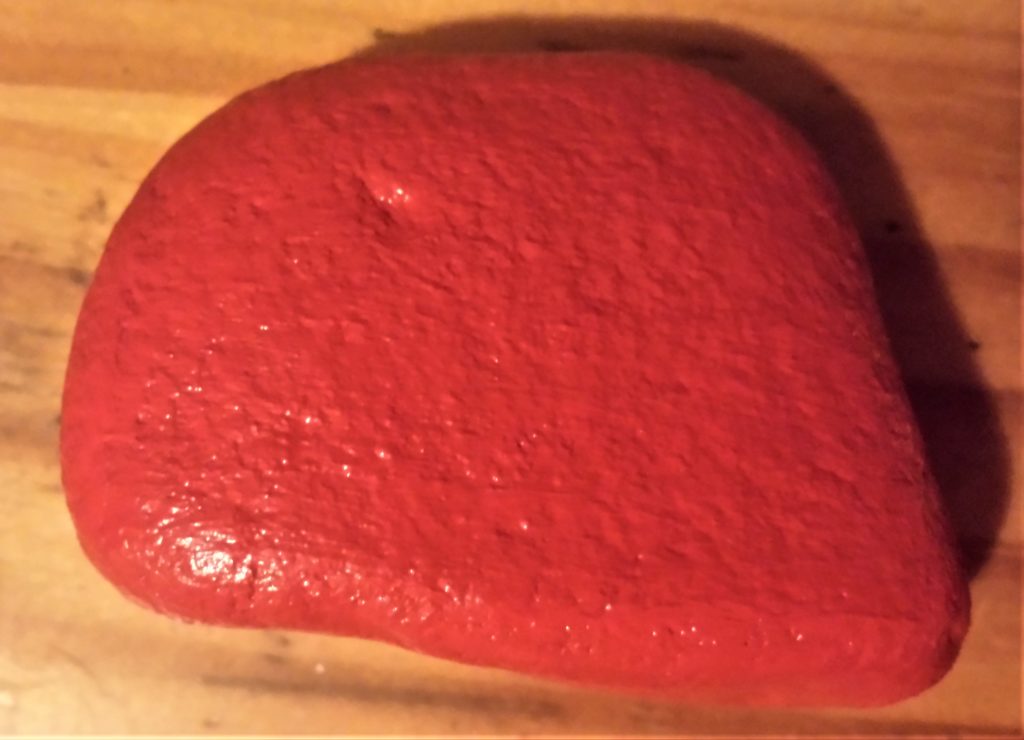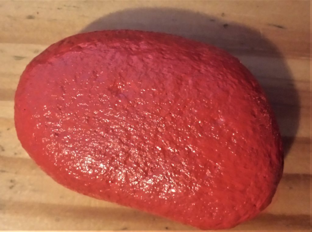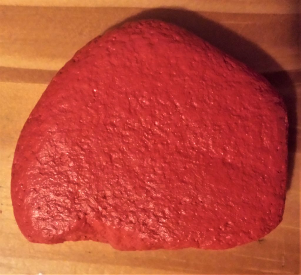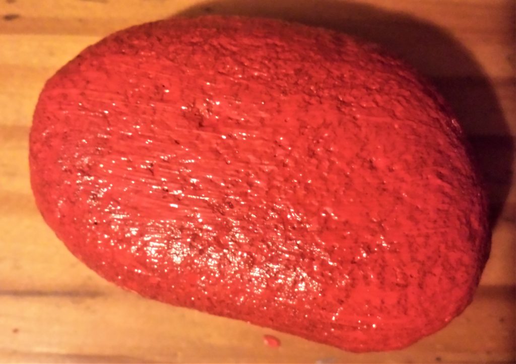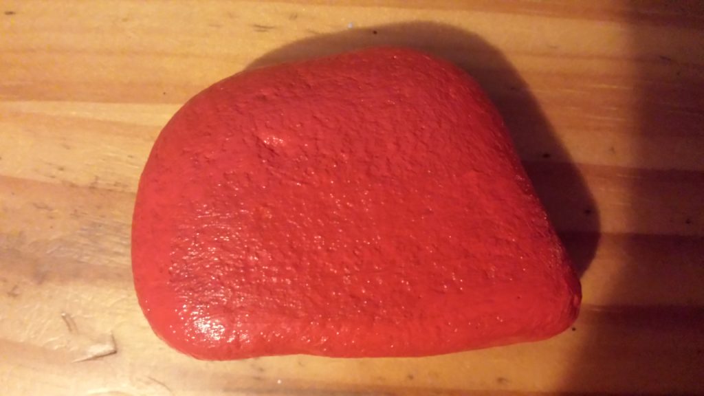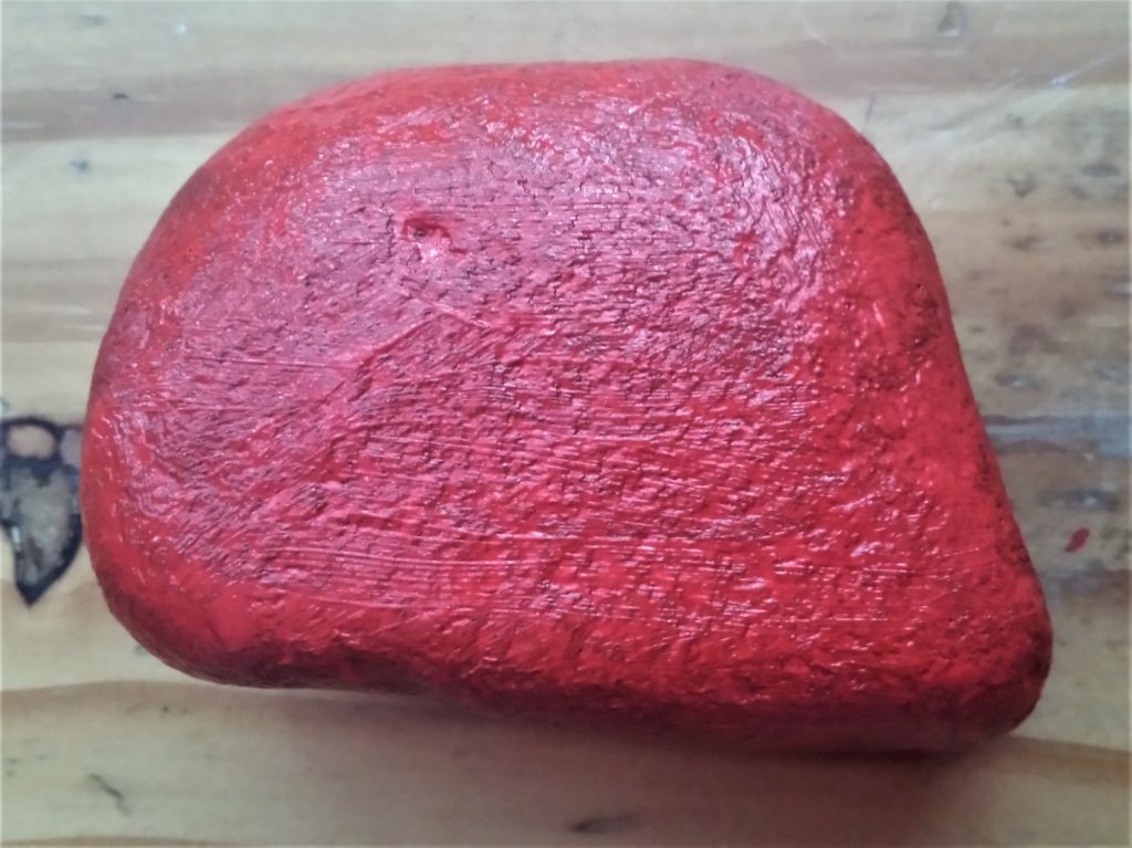 The next stone was also given 4 layers of red acrylic paint. This is it before being painted.