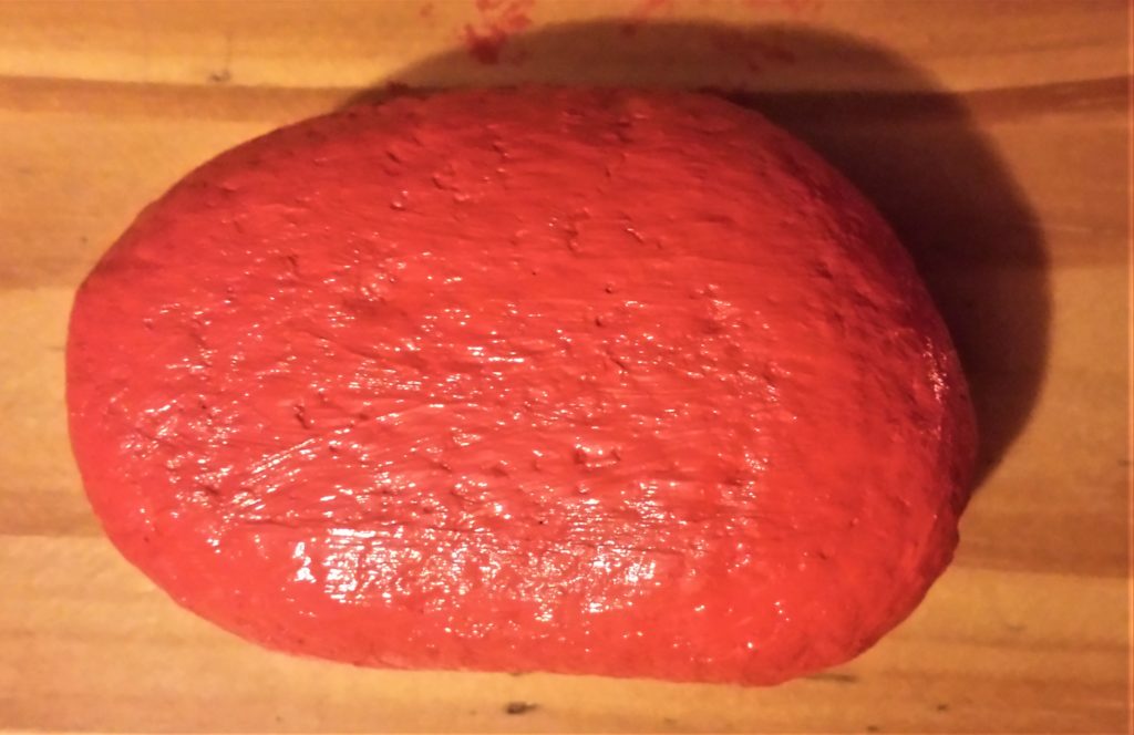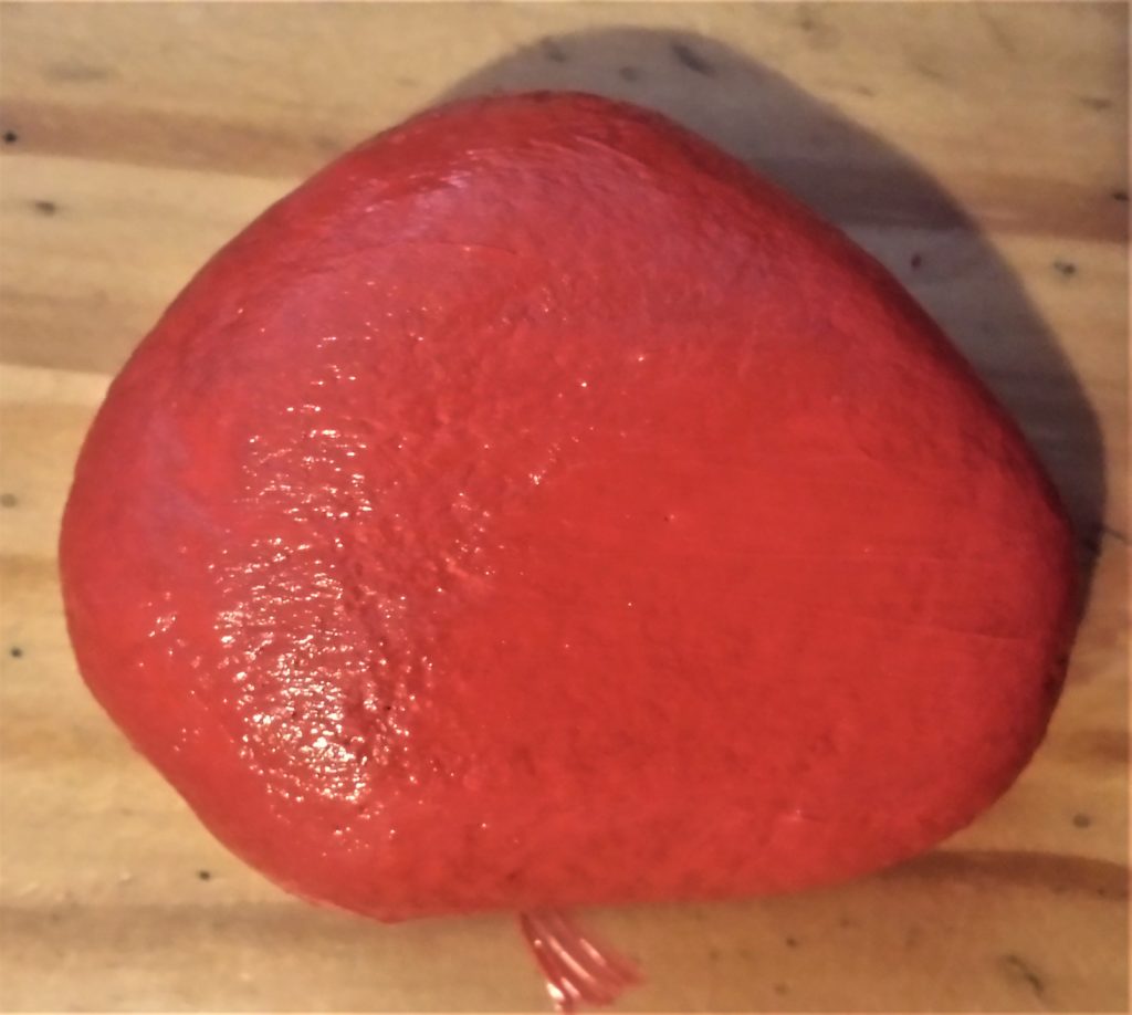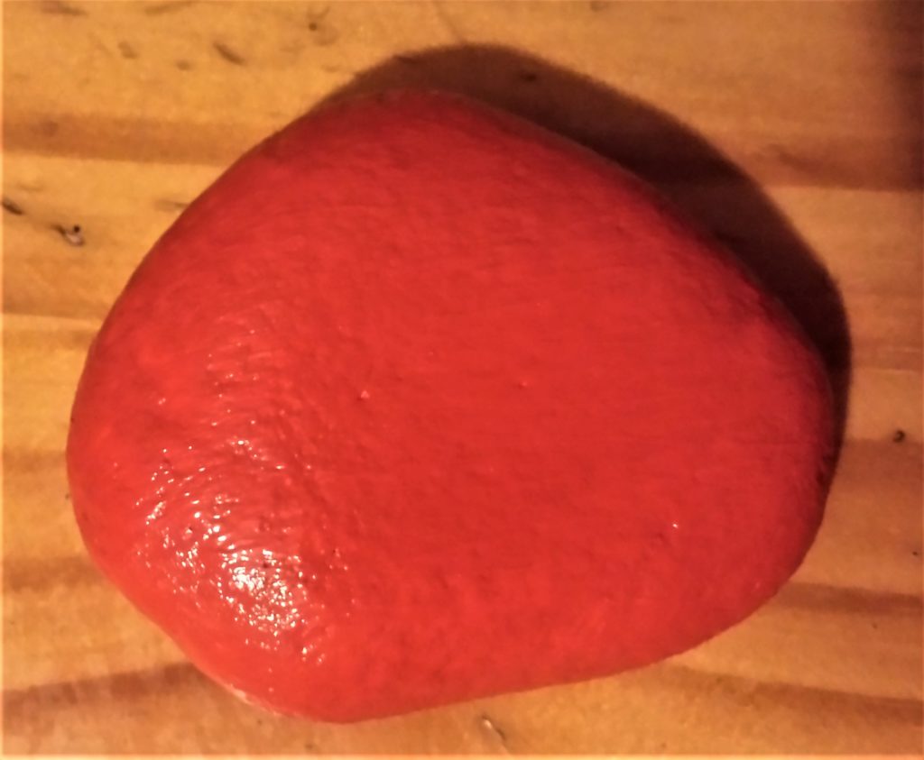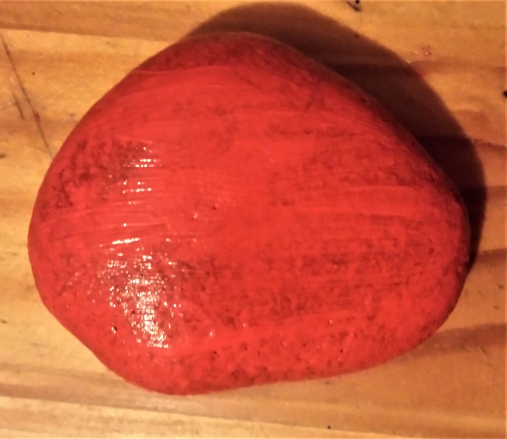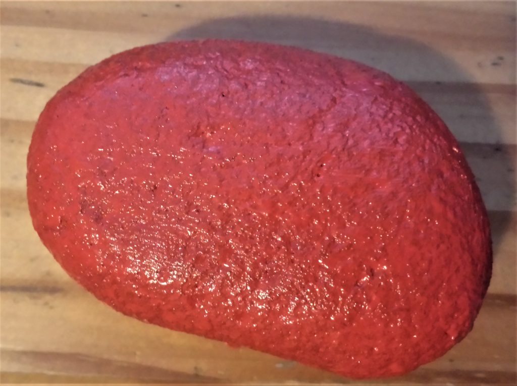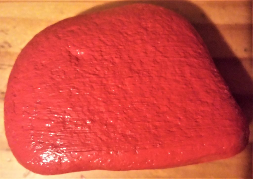 The next stone was also given 4 layers of red acrylic paint. This is it before being painted.