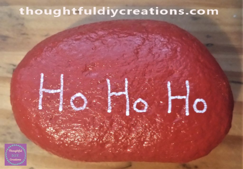 I wrote the words ‘HO HO HO’ on the stone using the white paint pen. I went over it a few times to ensure it was eligible. uni Posca Paint Pens.