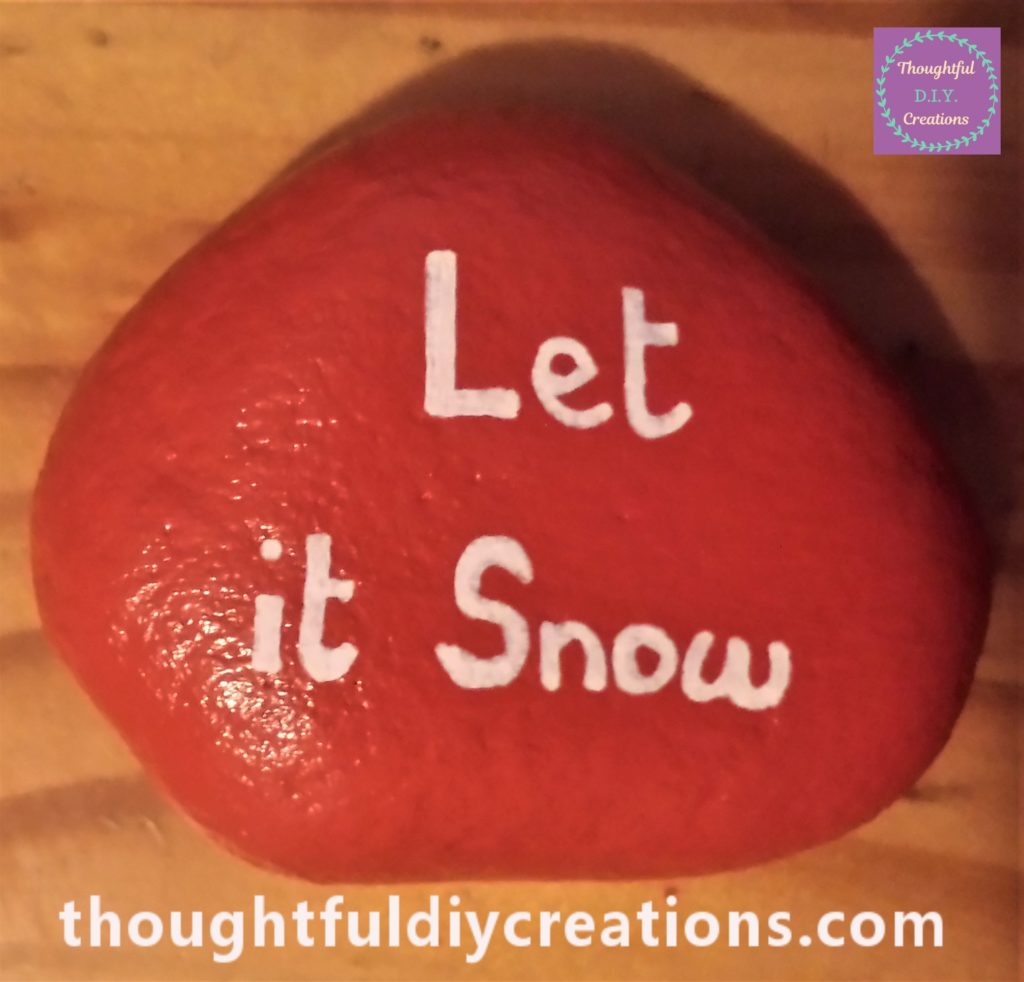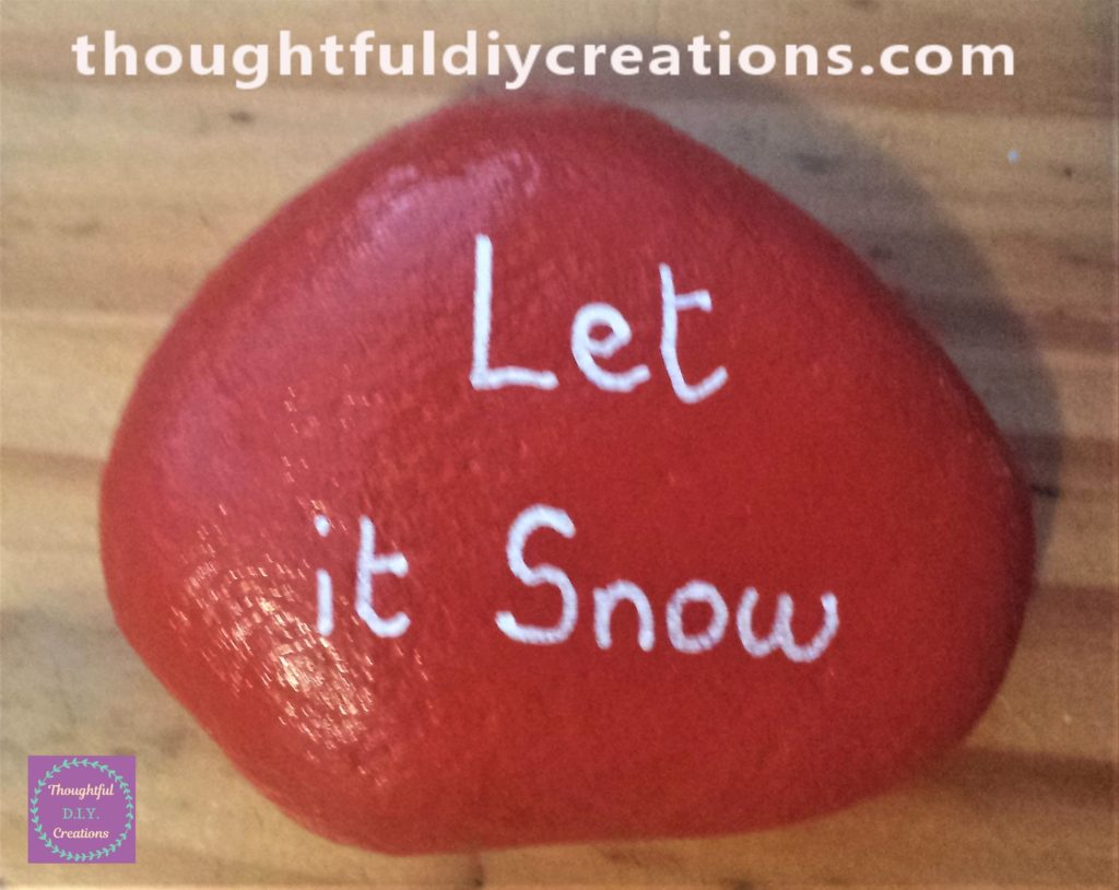 I wrote ‘Let it Snow’ on the last red stone, again using the white paint pen. This completed all the D.I.Y. Christmas Stones. uni Posca Paint Pens.