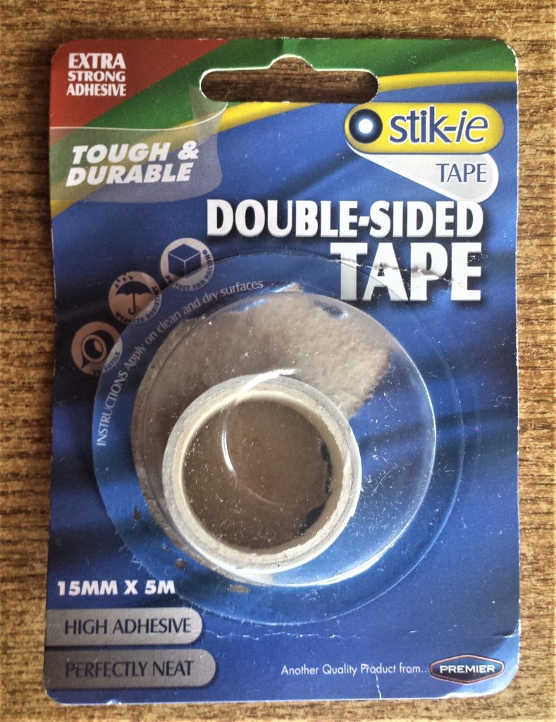 I used two sizes of Double-Sided Tape; I ran out of the bigger sized one so switched to the smaller sized one. Double Sided Tape.