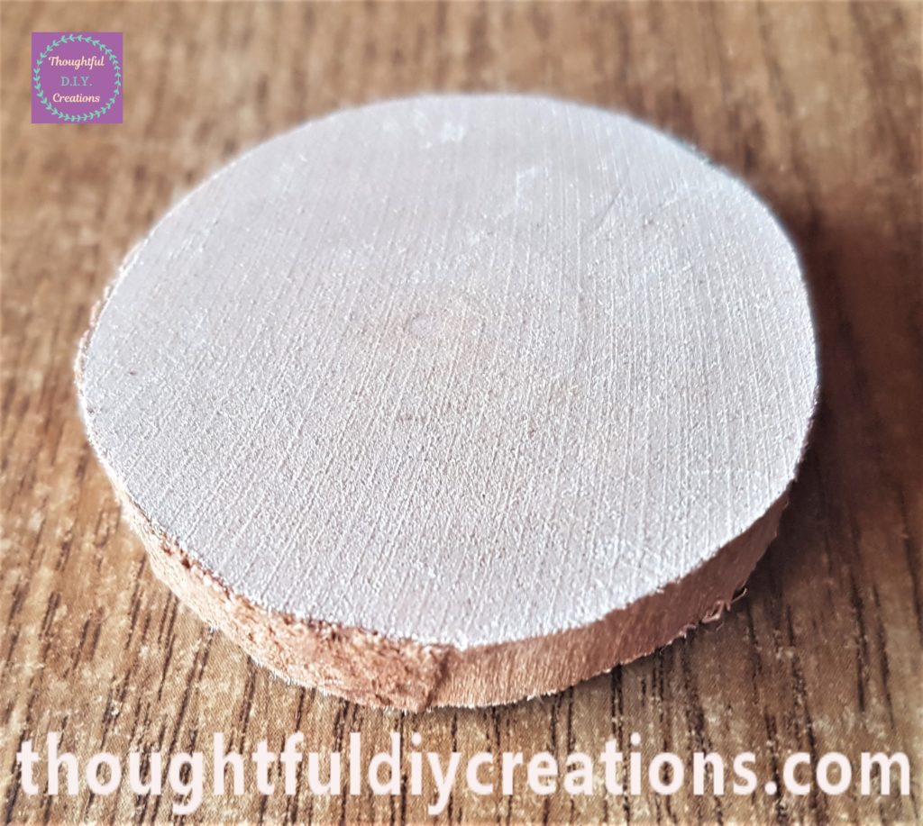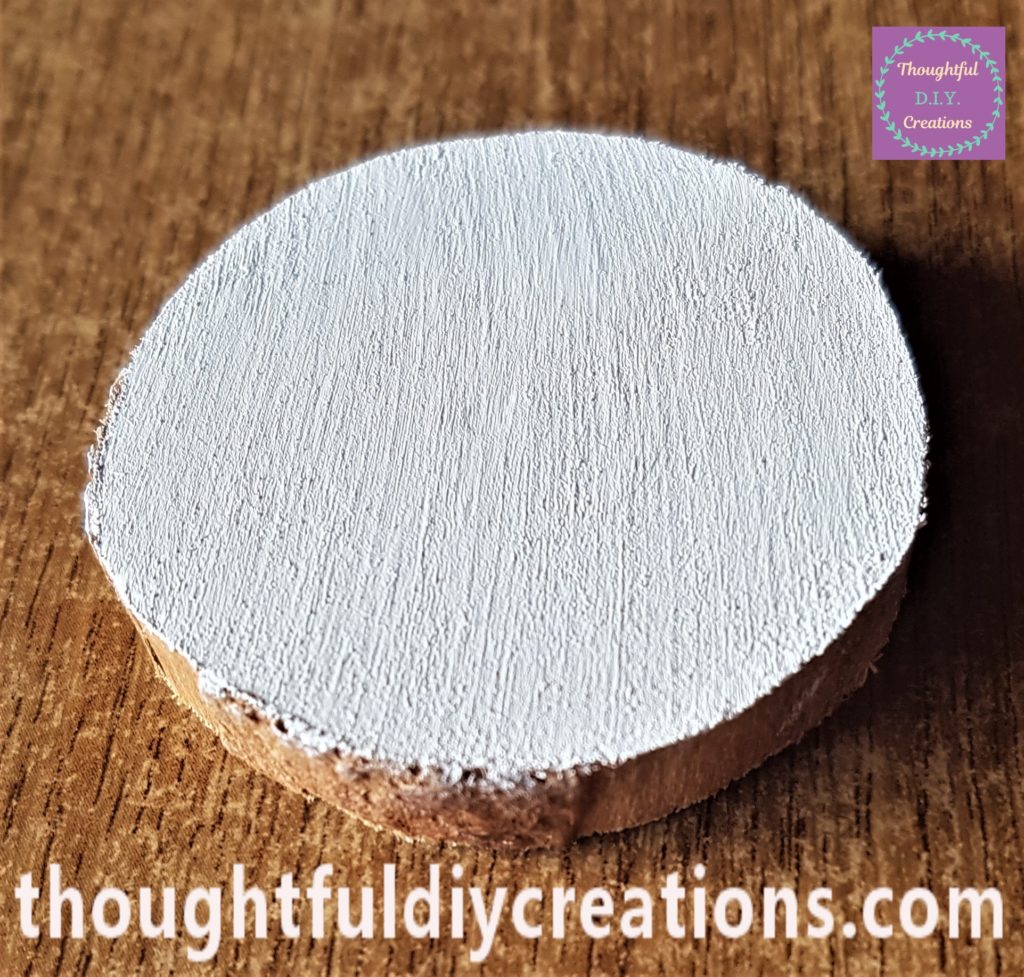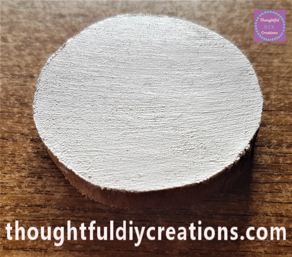 I also painted 4 layers of white acrylic paint onto the wood slice. I painted it the same time as the lollipop sticks to ensure they would all be ready at the same time. It made it easier that everything was painted the same colour so I only needed to clean 1 paintbrush after every layer. Acrylic Paint Titanium White.