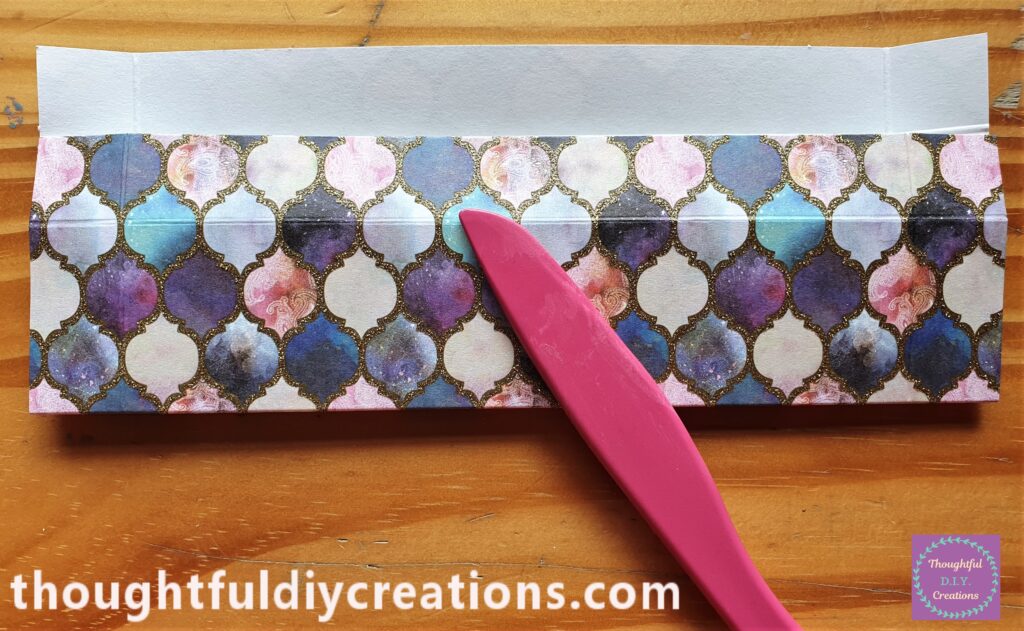 I put the Paper with the Long Side Width on my Score Board. I Scored down the Paper at 3/4″ and at 7″ with my Pink Bone Folder.
