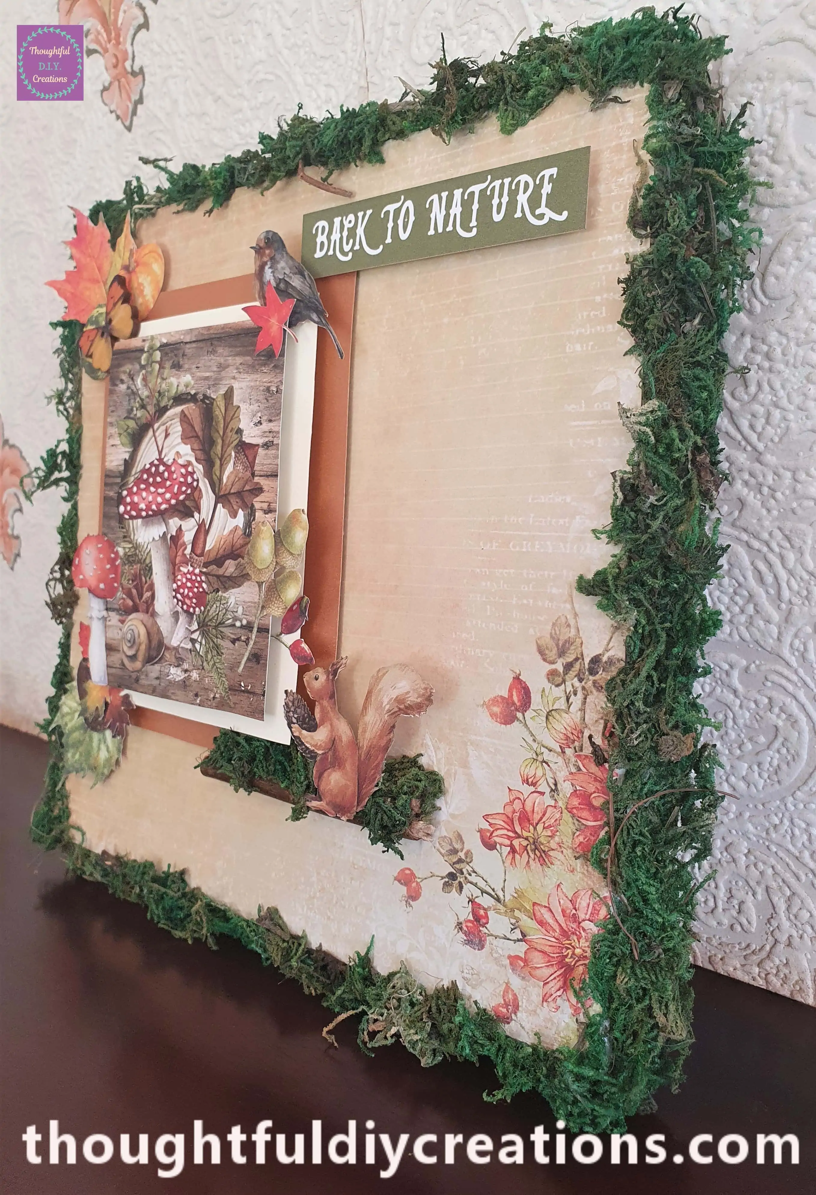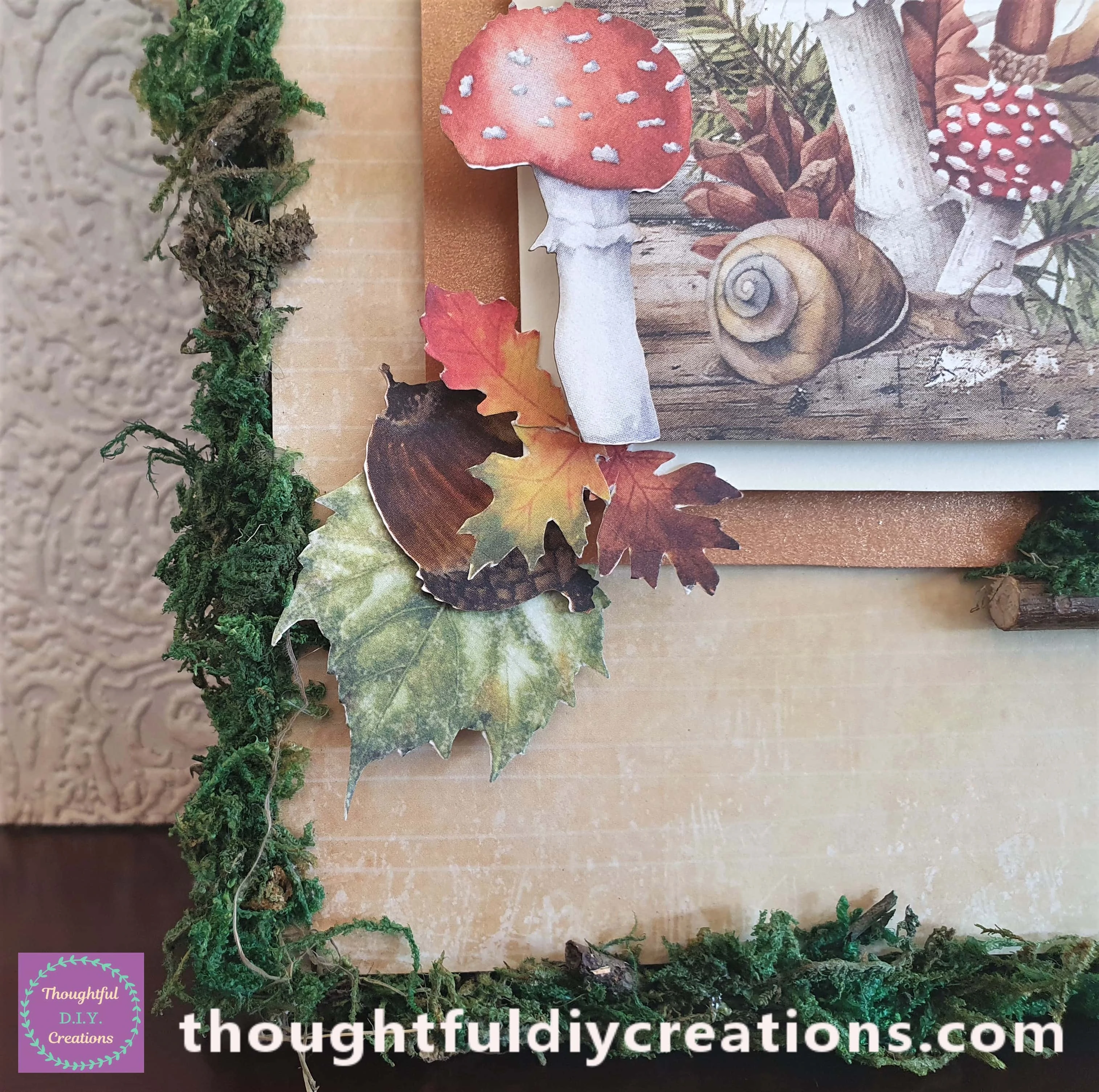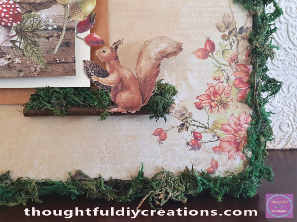 I Love how the Nature Canvas turned out. I think the Dried Moss adds so much Character to the Canvas; it gives me Fairytale Vibes. I adore the warm Autumn Colours on the Background and the Cut Out Images. I like how Realistic the Die-Cuts and Autumn Images are; sometimes it can be hard to get Images more relevant for Adults, but I think these are perfect.
