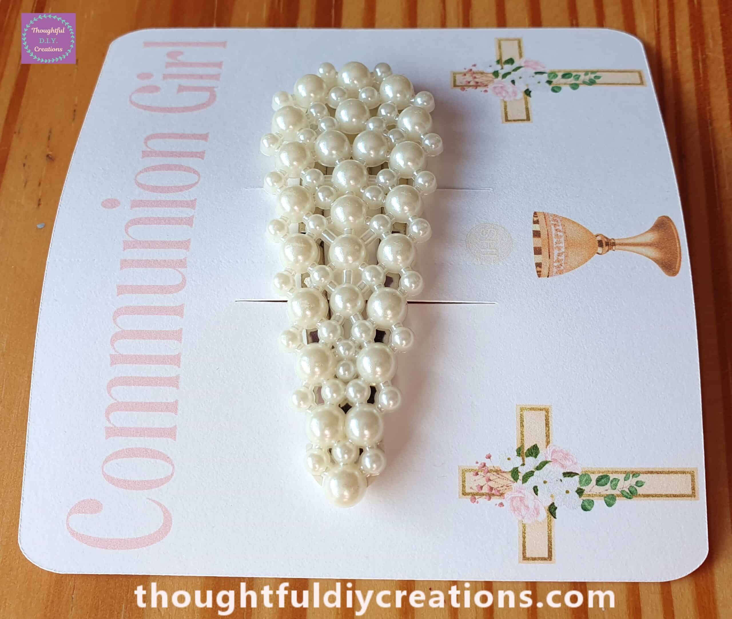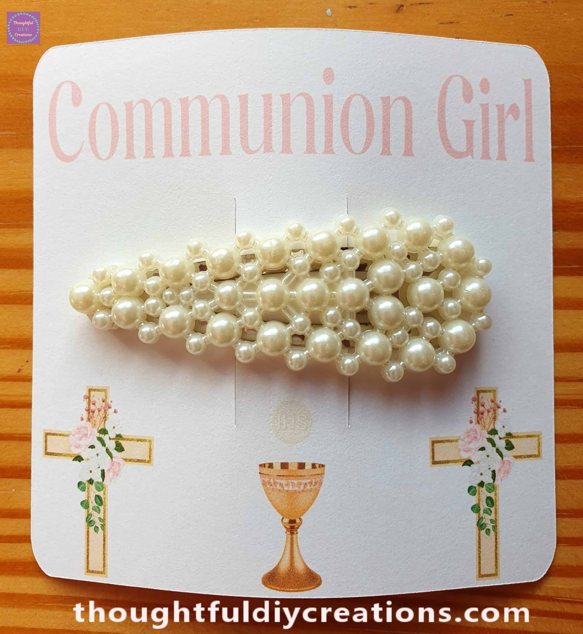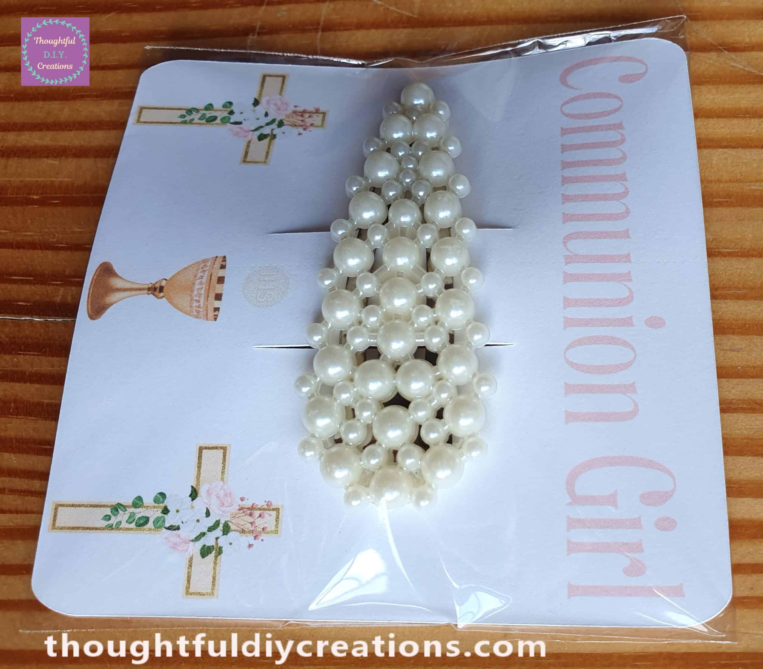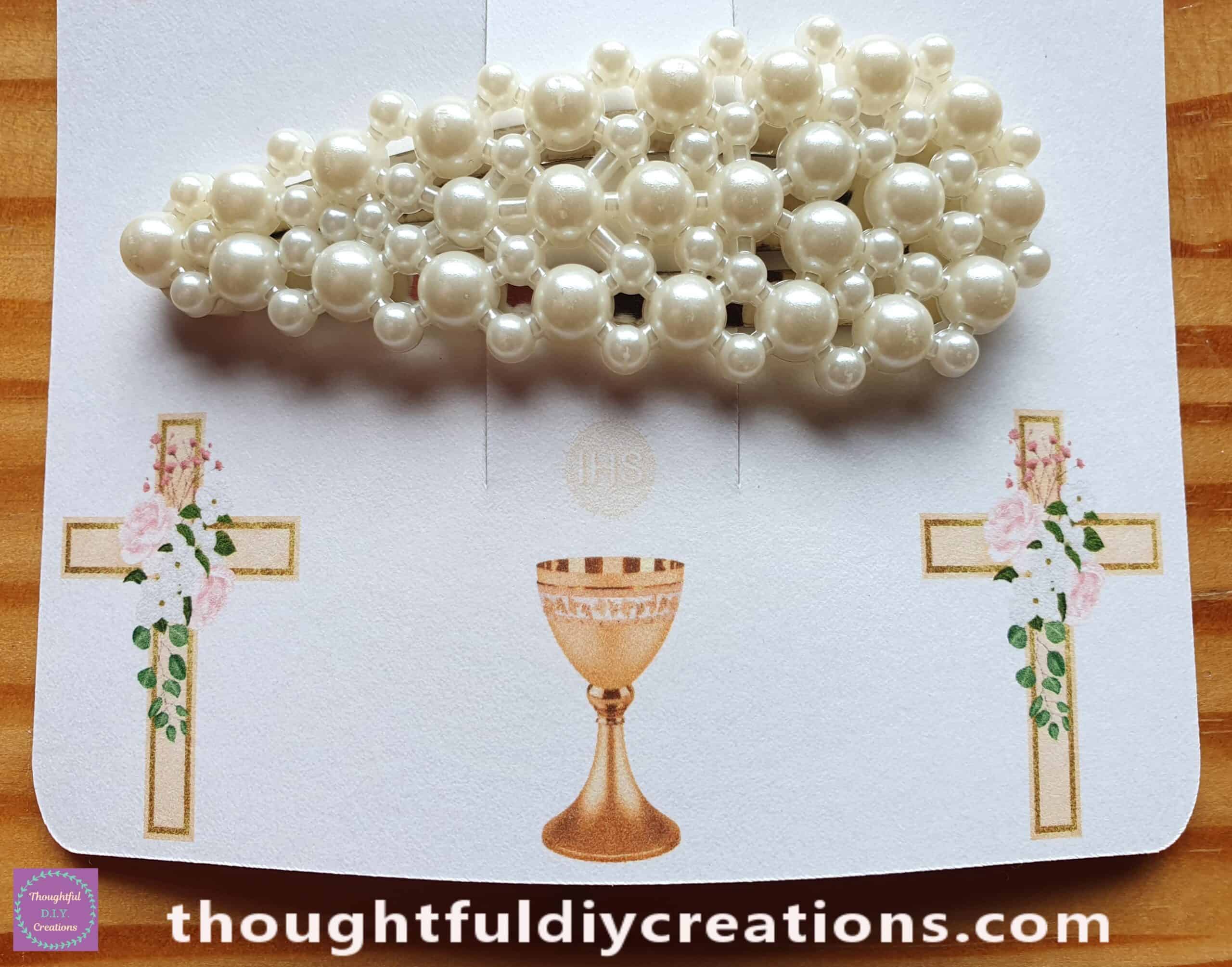 Faux Pearl Hair Clip and Communion Girl Clip Holder.
