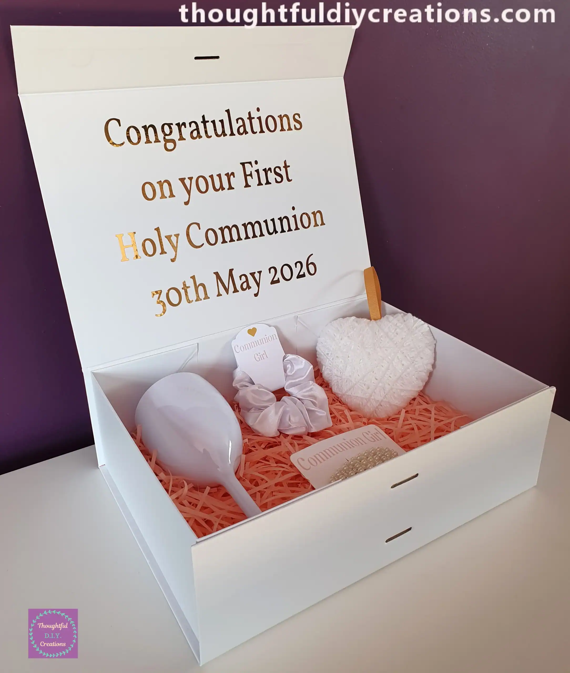 Here are some Ideas to Include inside the Gift Box and can be bought separately; Communion Clip, Communion Scrunchie.