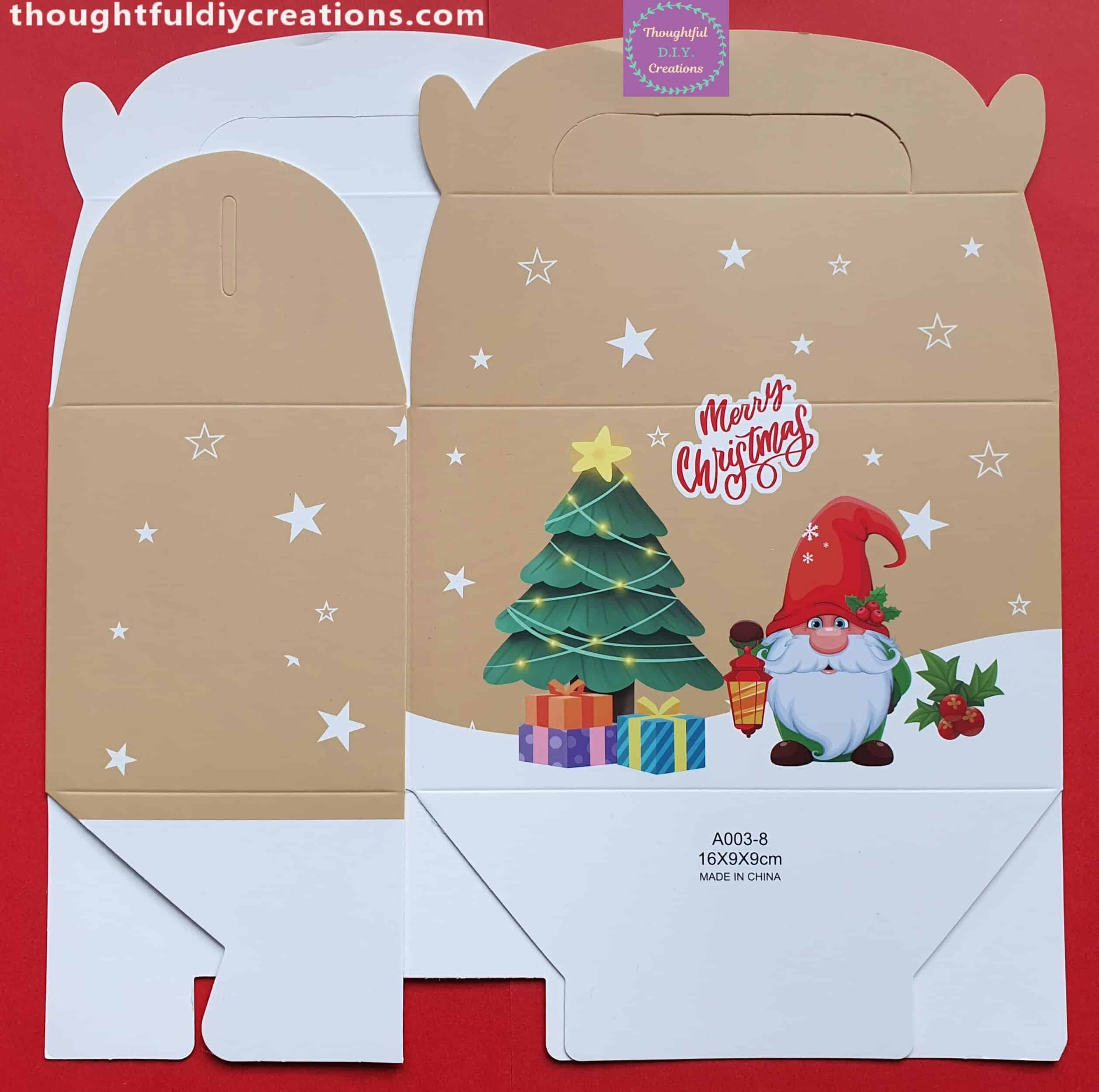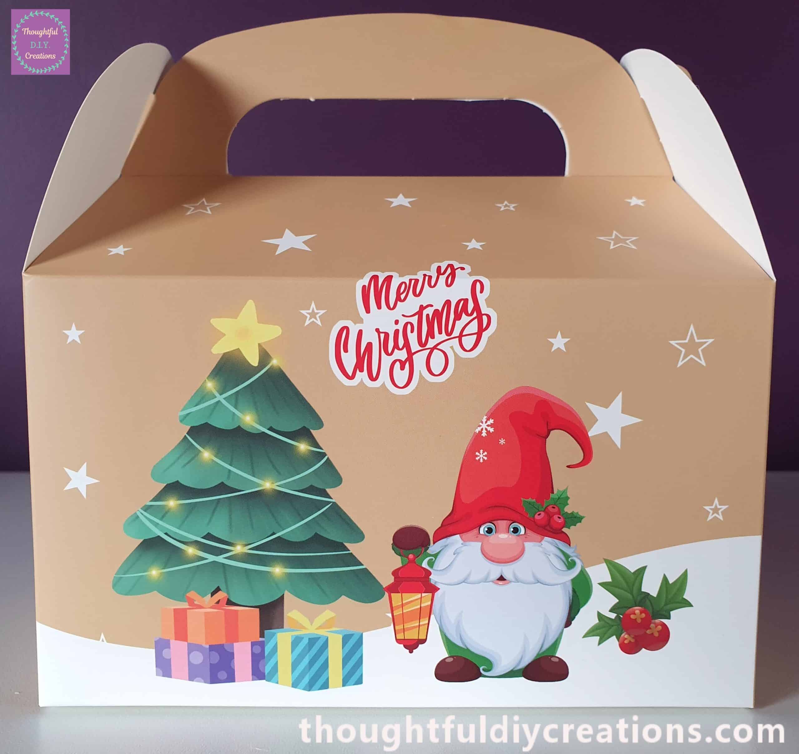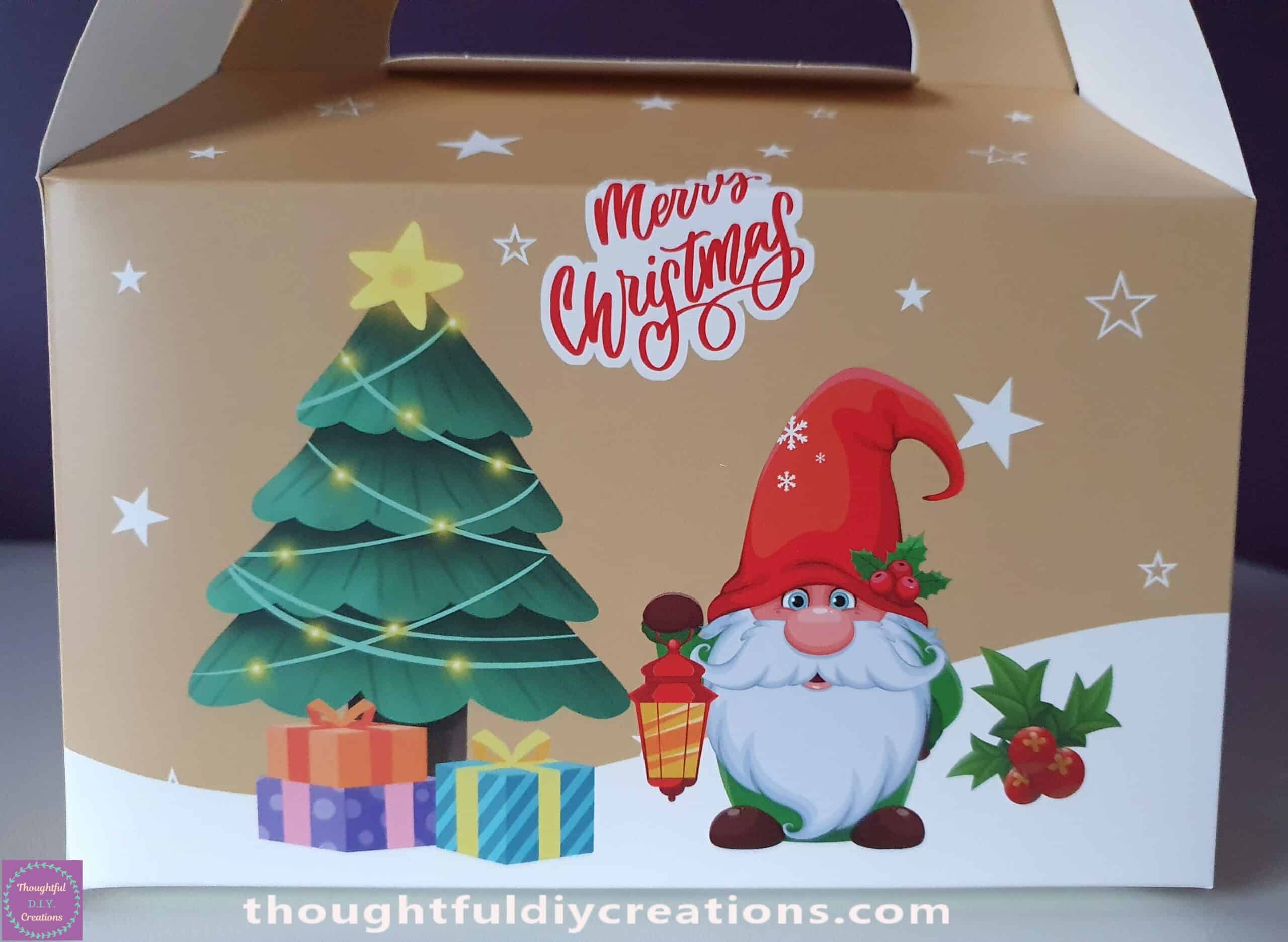 - A stunning Box made with Premium Cardstock featuring the Gnome Christmas Scene on the Front and the Back of the Box.