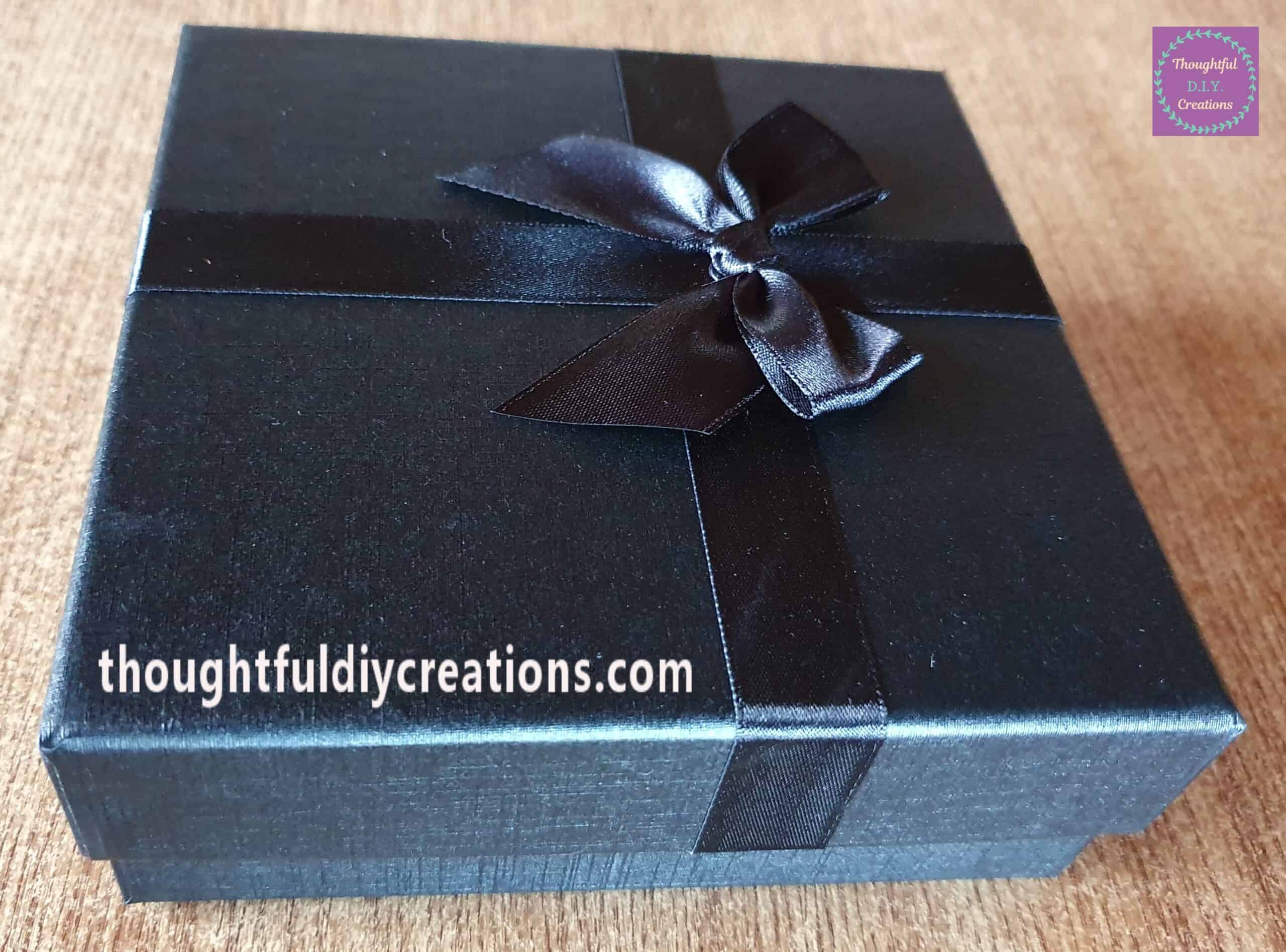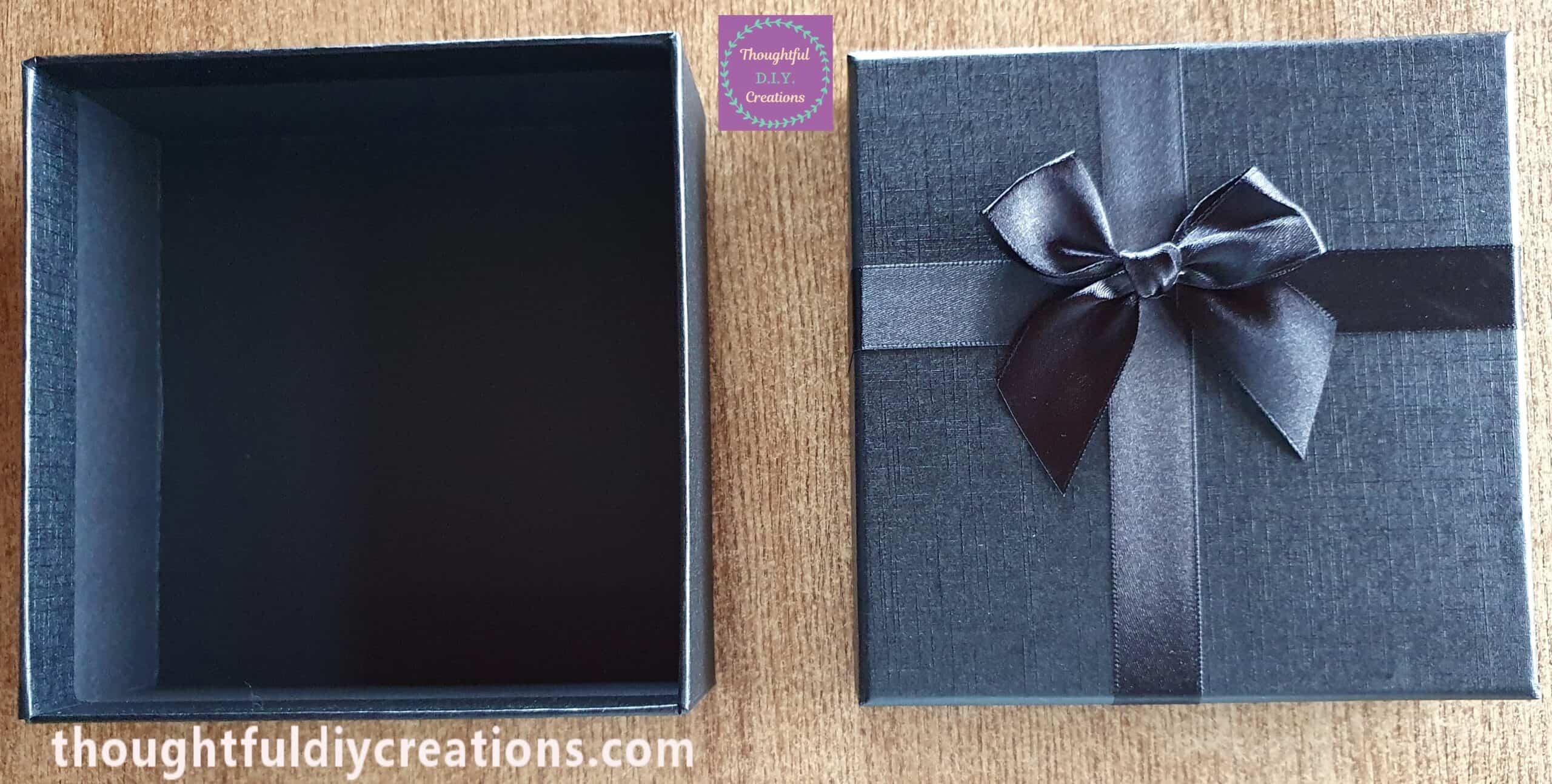 - Black Gift Box with Lid, Satin Ribbon & Bow.