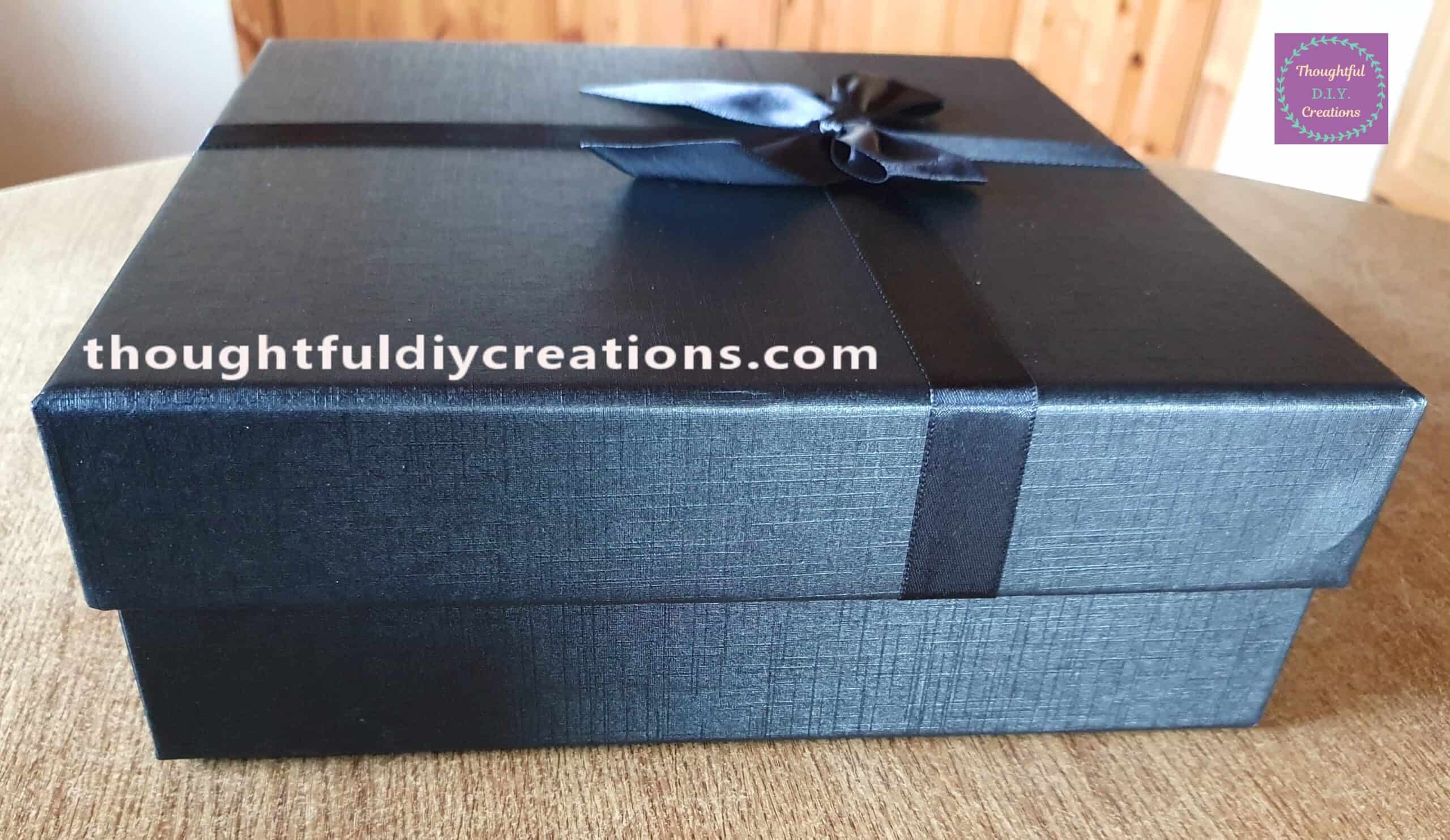 • Black Gift Box with Lid, Satin Ribbon & Bow.