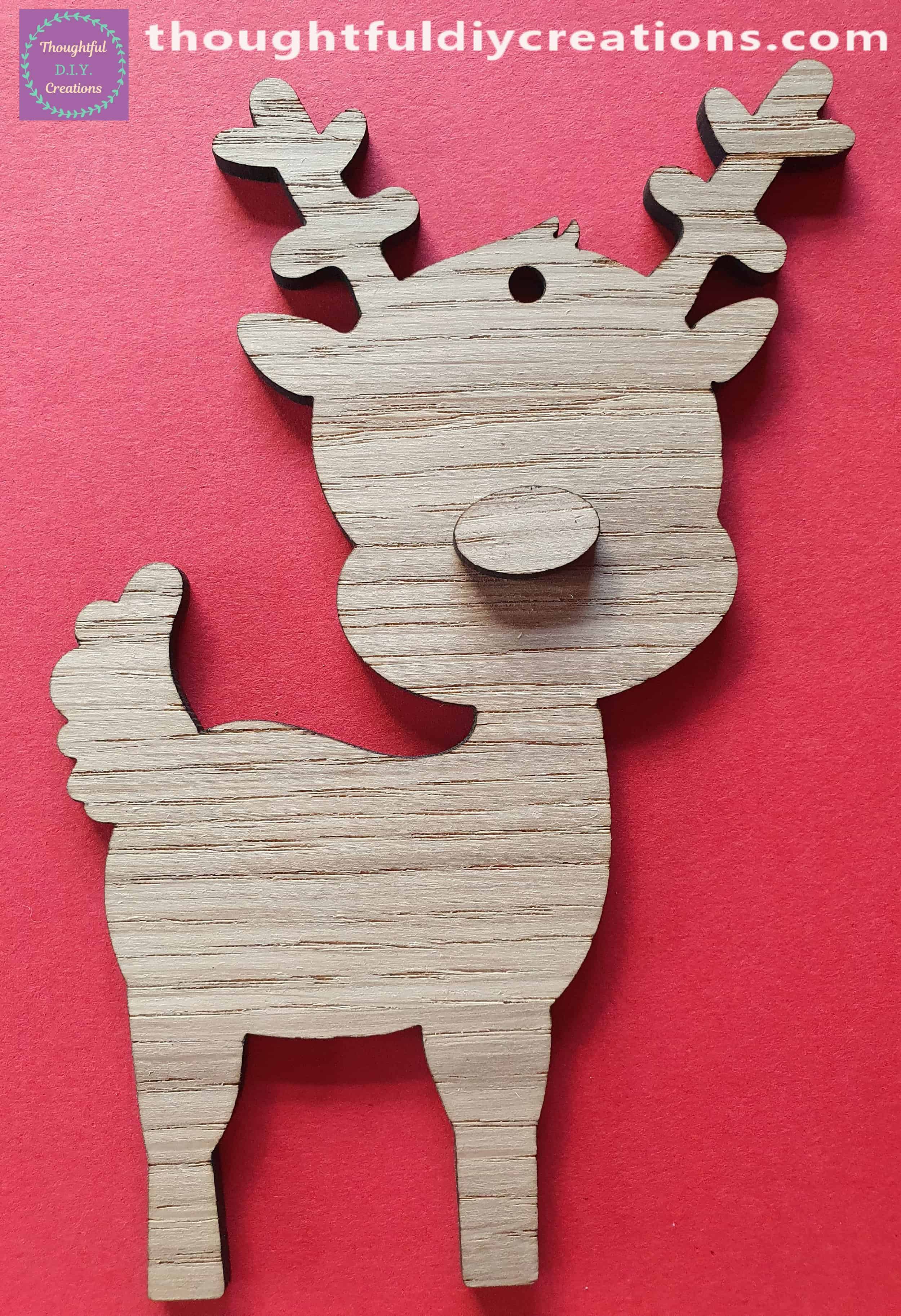 - Laser Cut Oak Veneer MDF Reindeer Shaped Ornament.