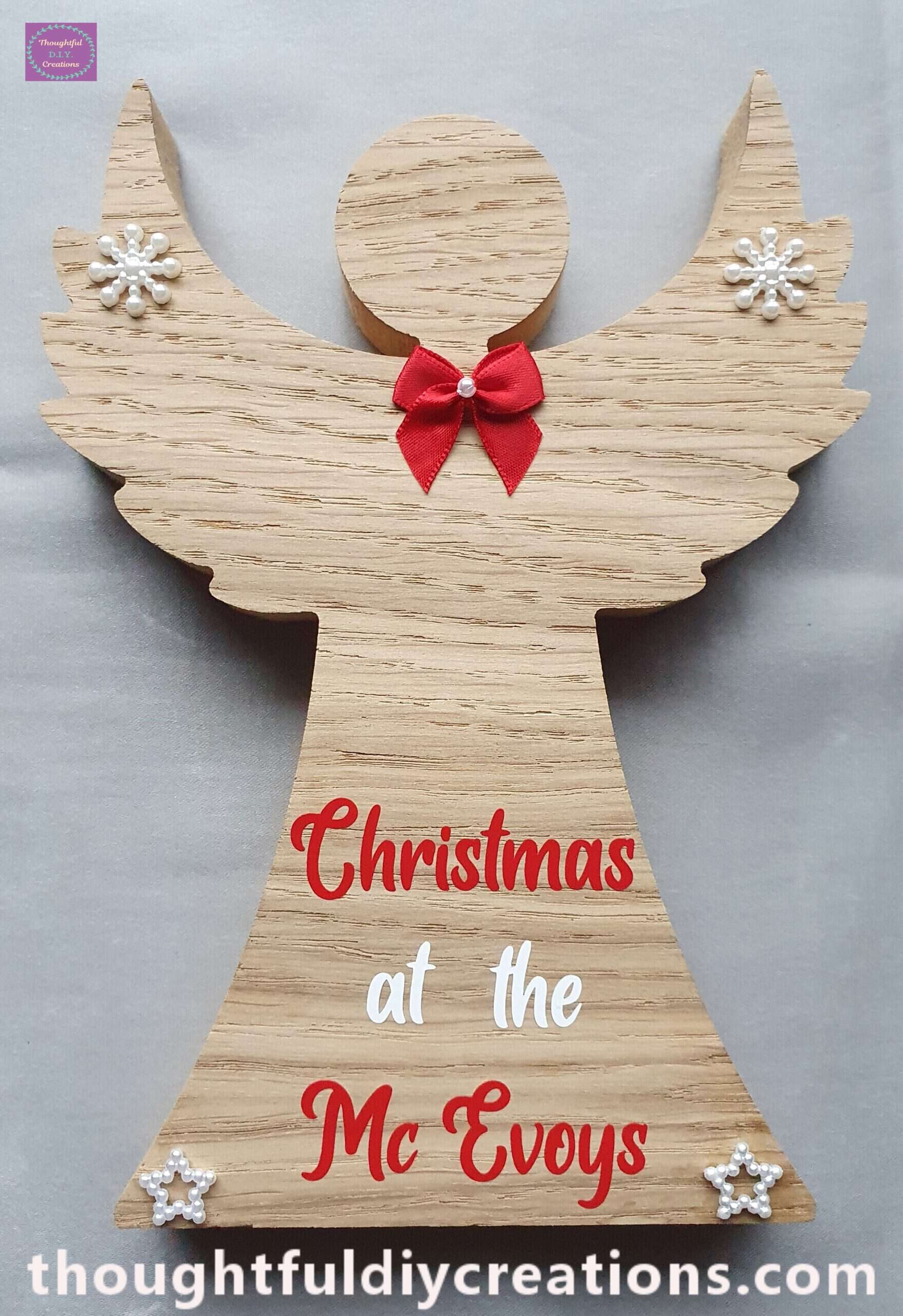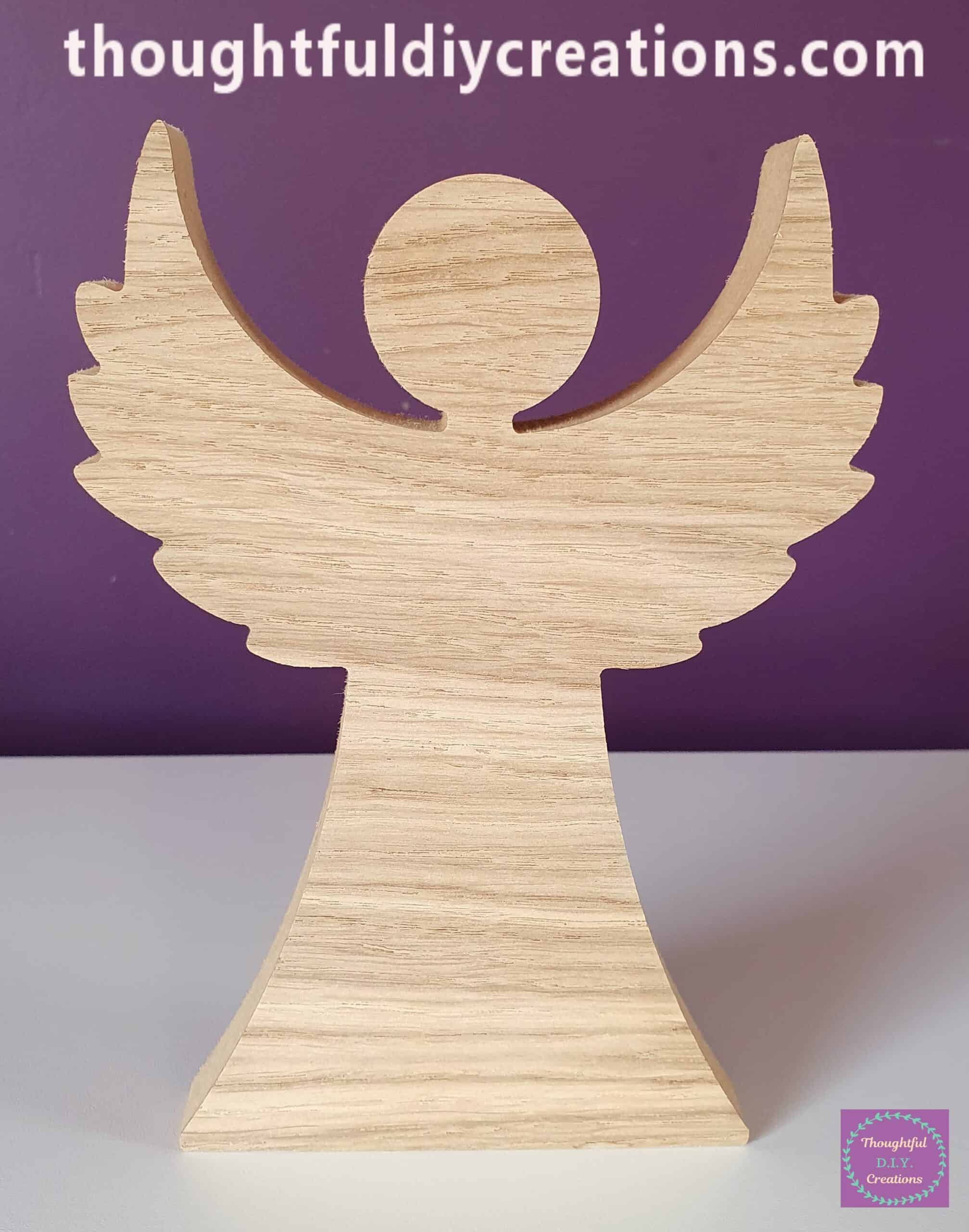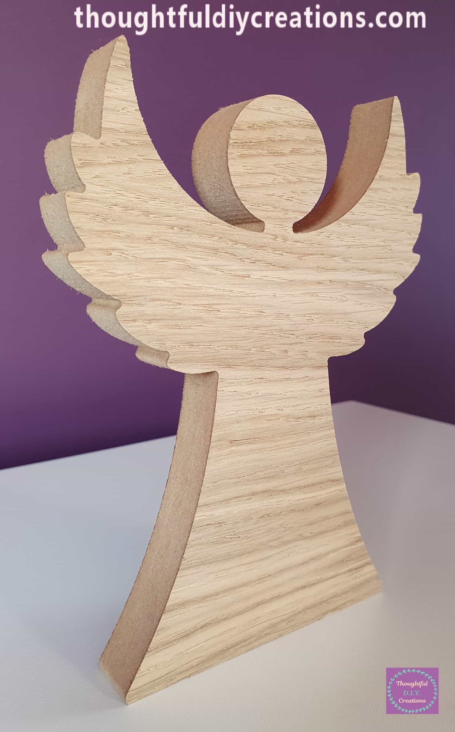 Personalised Angel; Oak Veneer MDF Freestanding Angel.