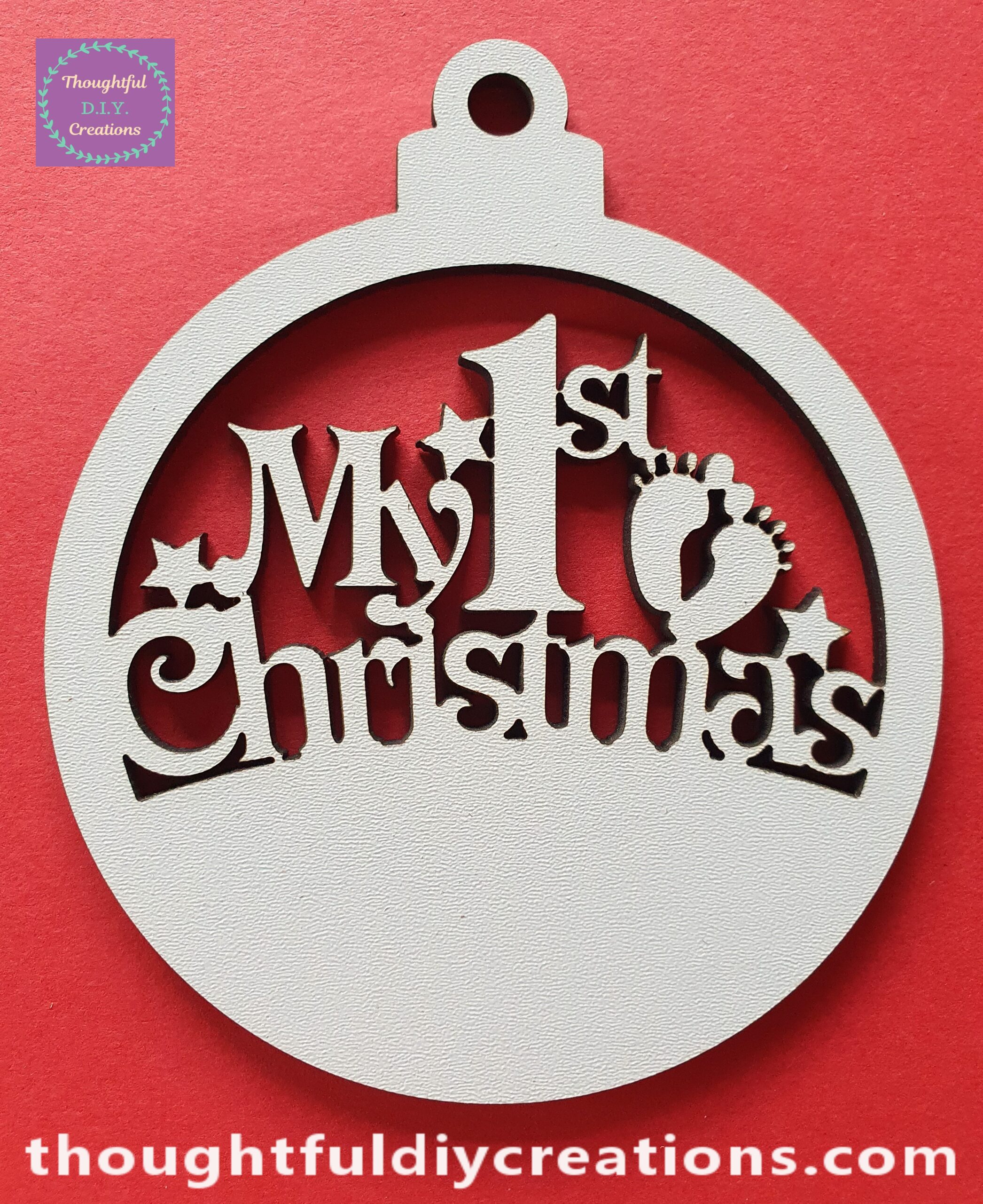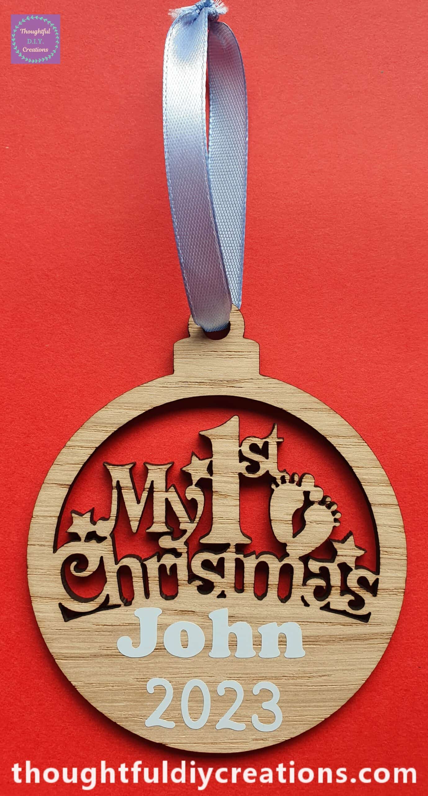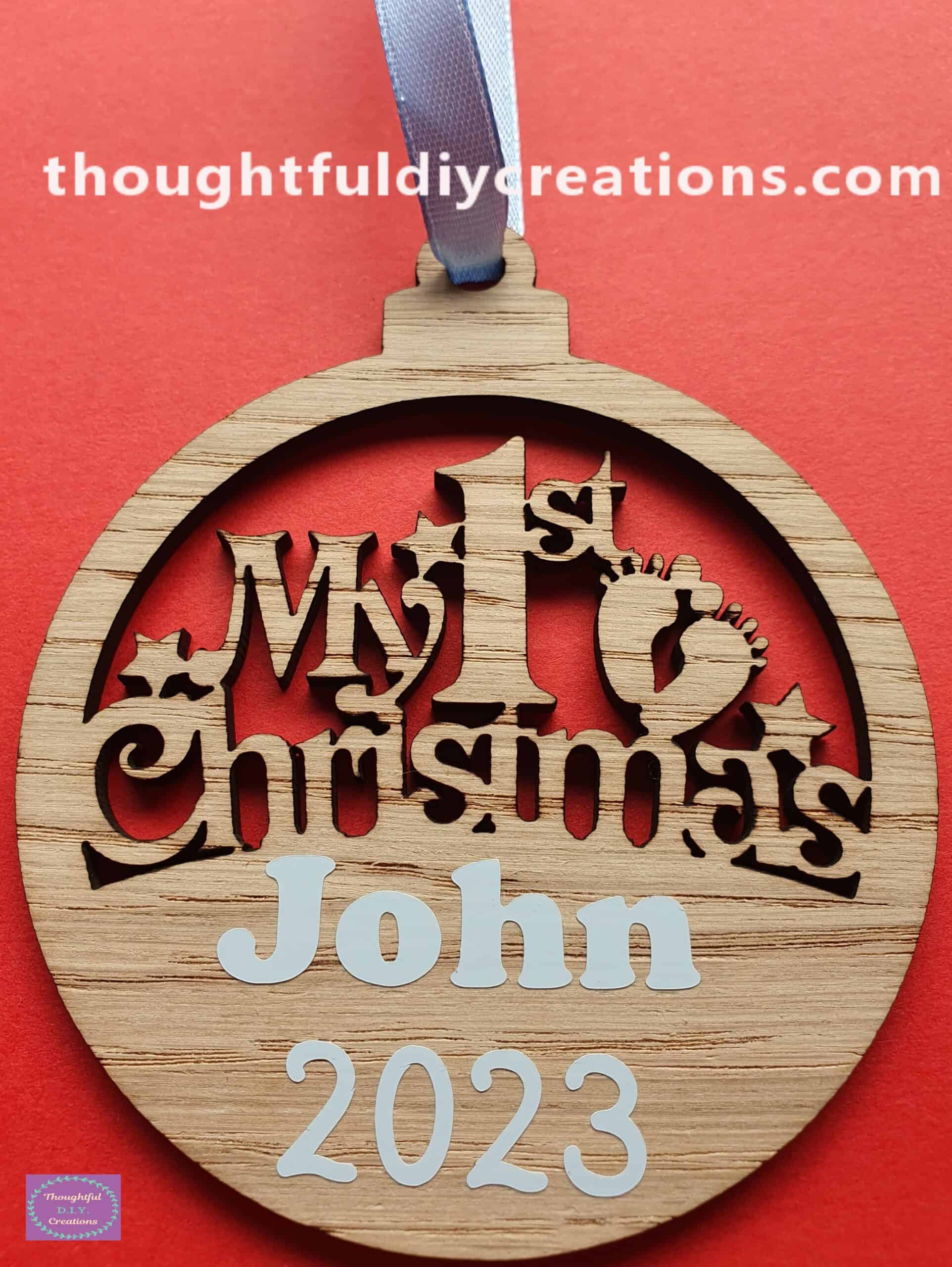 Laser Cut White MDF or Oak Veneer MDF ‘My 1st Christmas’ Decoration.