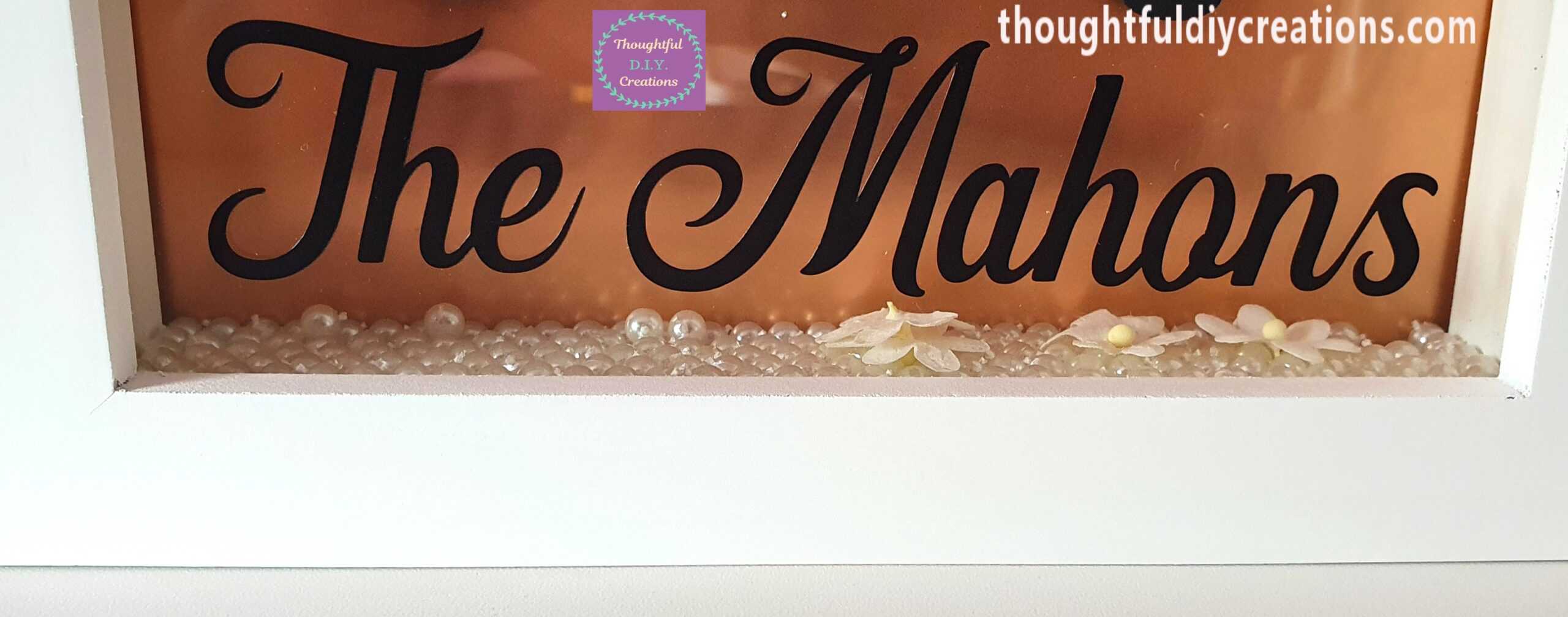 Personalised White Wedding Shadow Box Frame with Perspex attached to the Frame; to ensure the elements added to the Inside of the Frame are Protected and kept Safe.