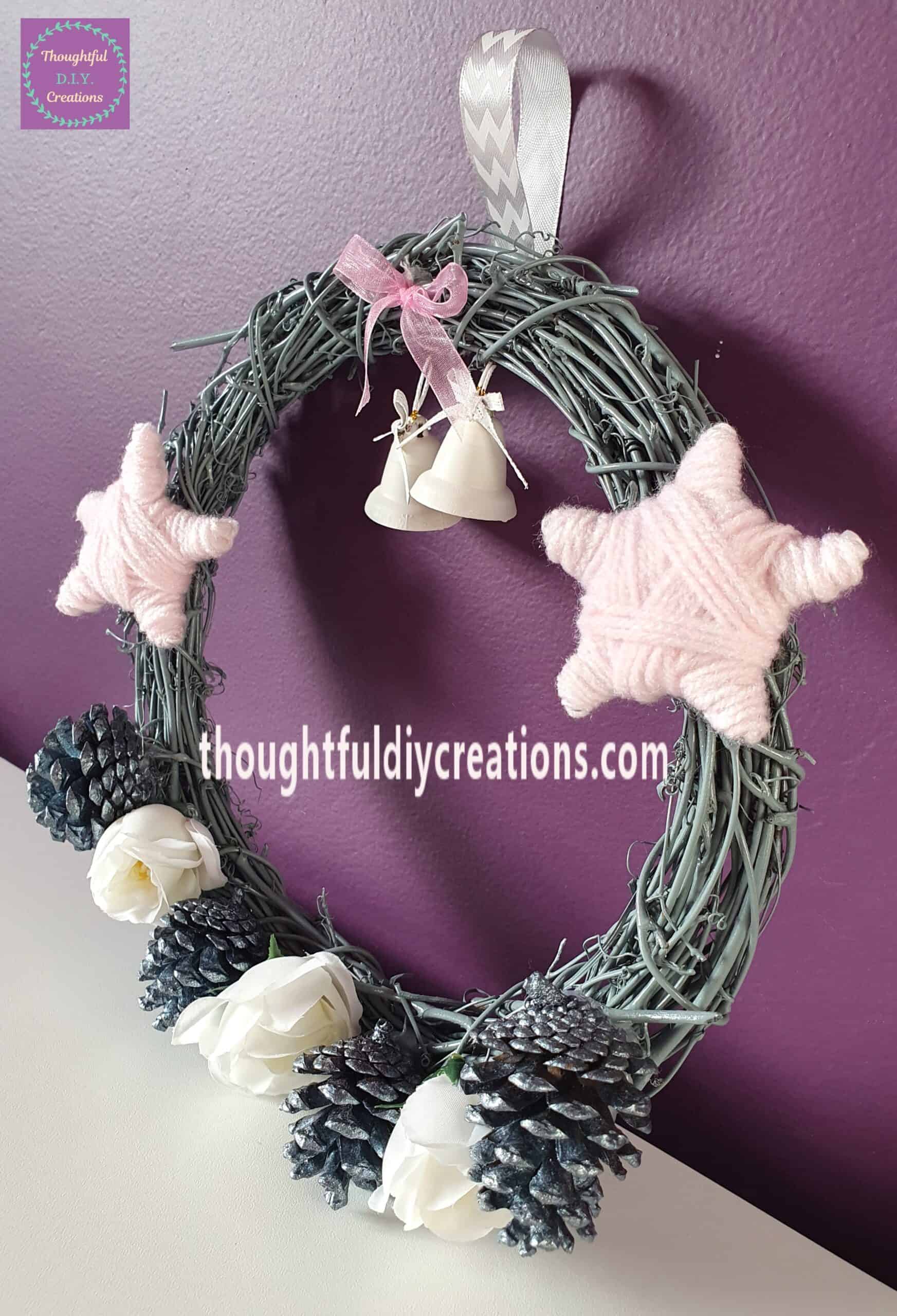The Rattan Wreath was Spray Painted all over with 2 Layers of Grey Spray Paint.