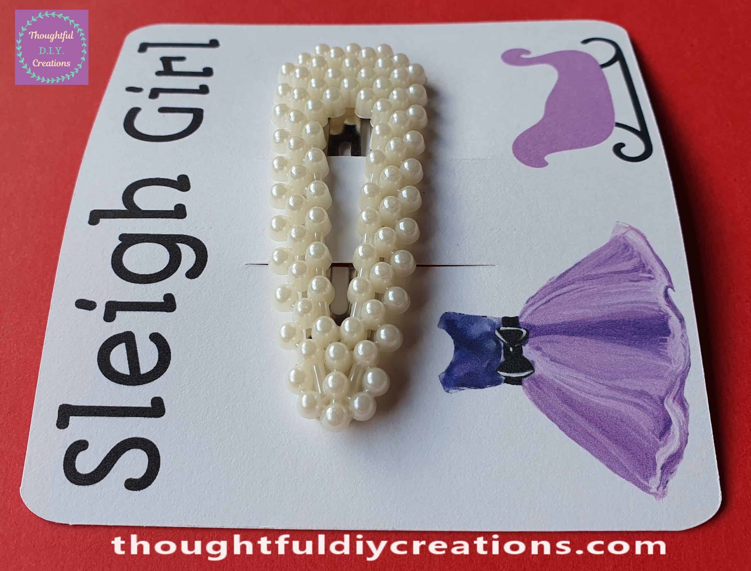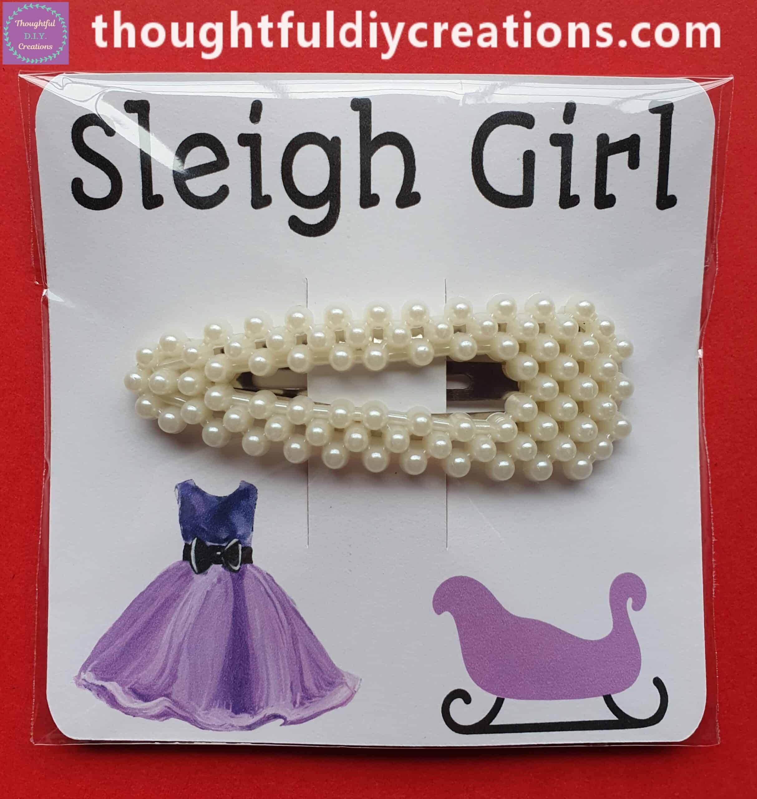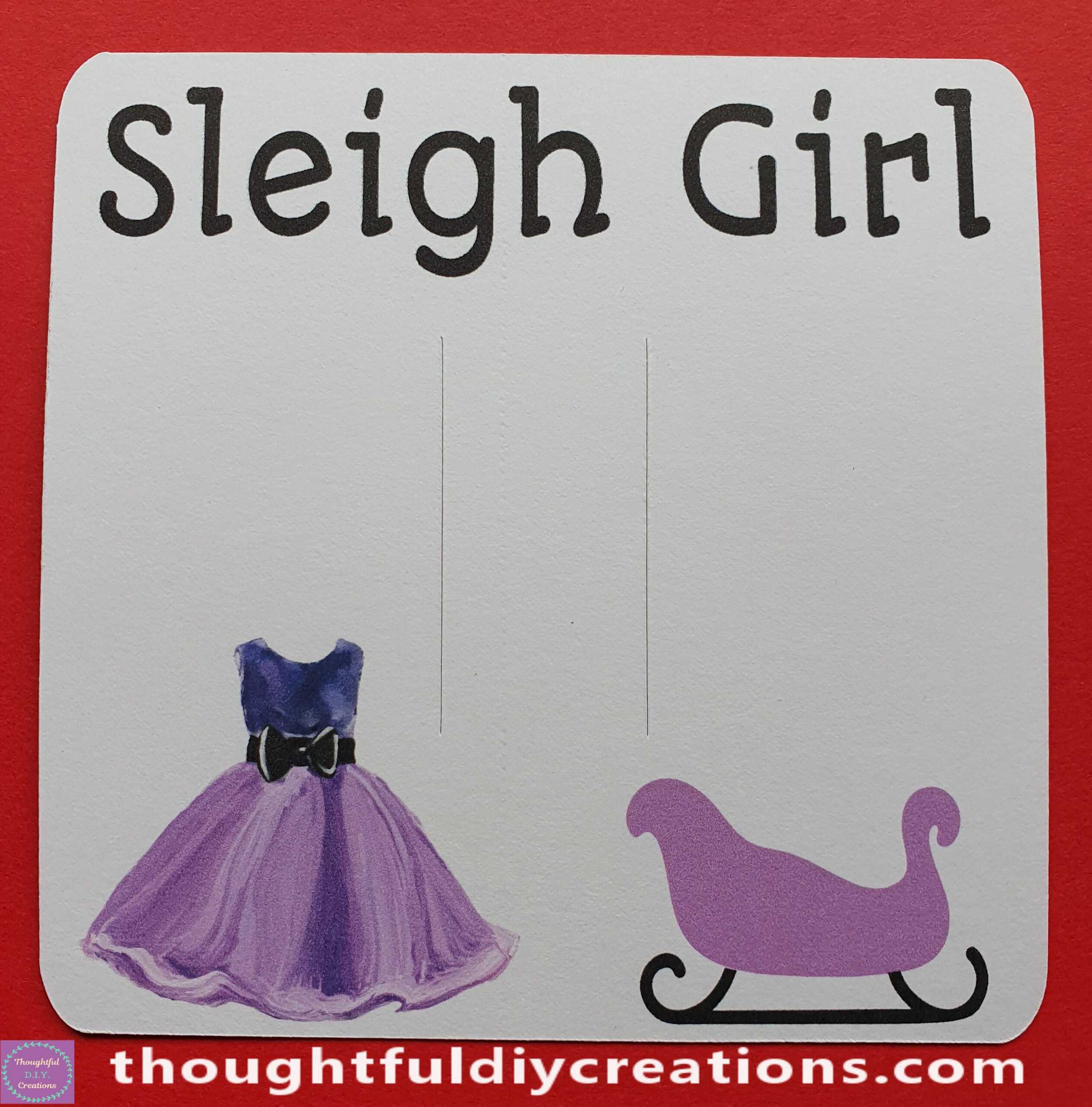 I Designed this ‘Sleigh Girl’ Clip Holder featuring the Text in Black at the Top of the Clip Holder. I placed a Purple Dress with Black Bow and a Purple and Black Sleigh on the bottom of the Clip Holder.