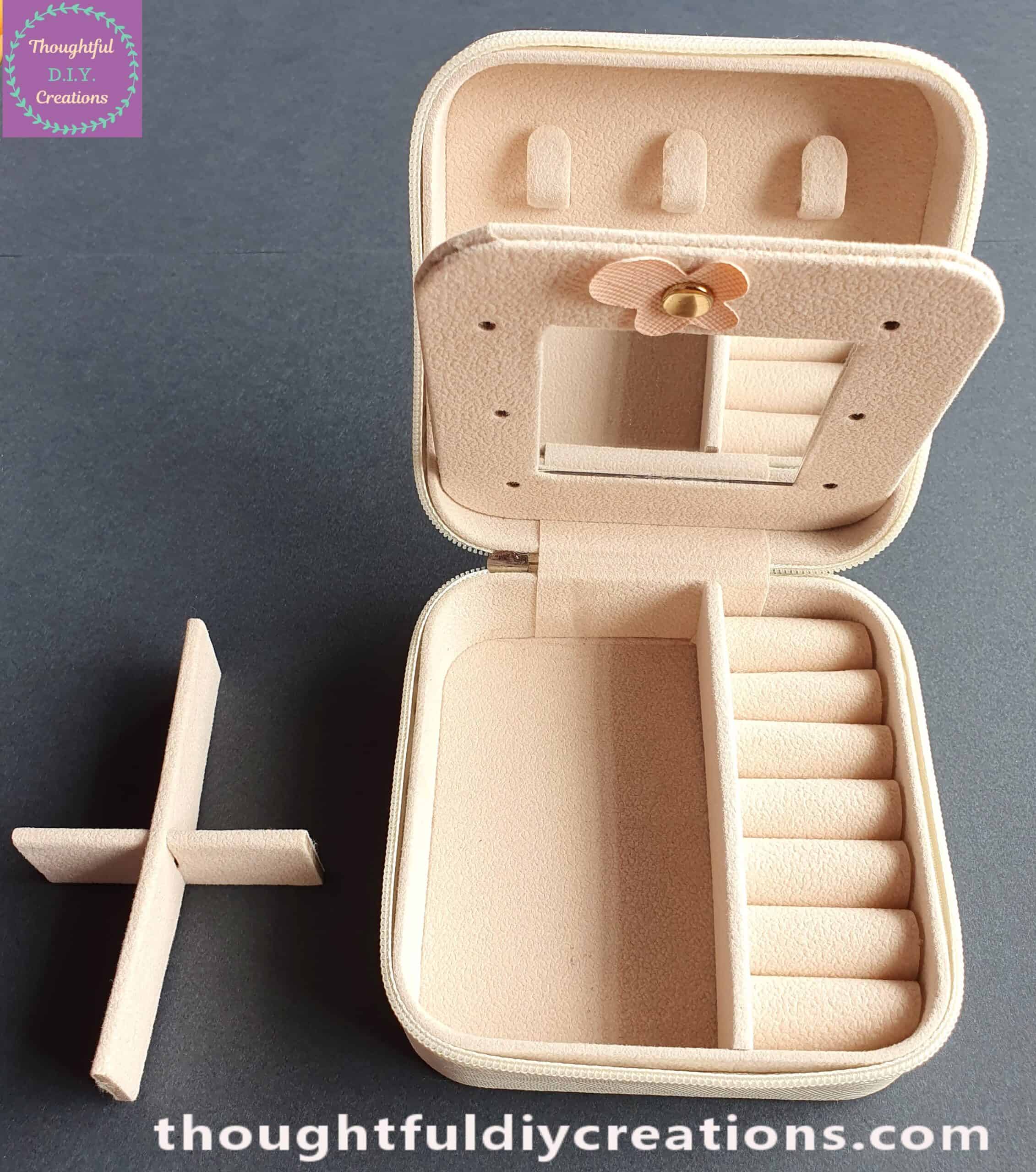 This Stunning Cream Personalised Jewellery Box can Fit easily into a Handbag; it is the perfect Jewellery Box for Travelling; as it’s Compact & Lightweight with Storage Space for your Jewellery.