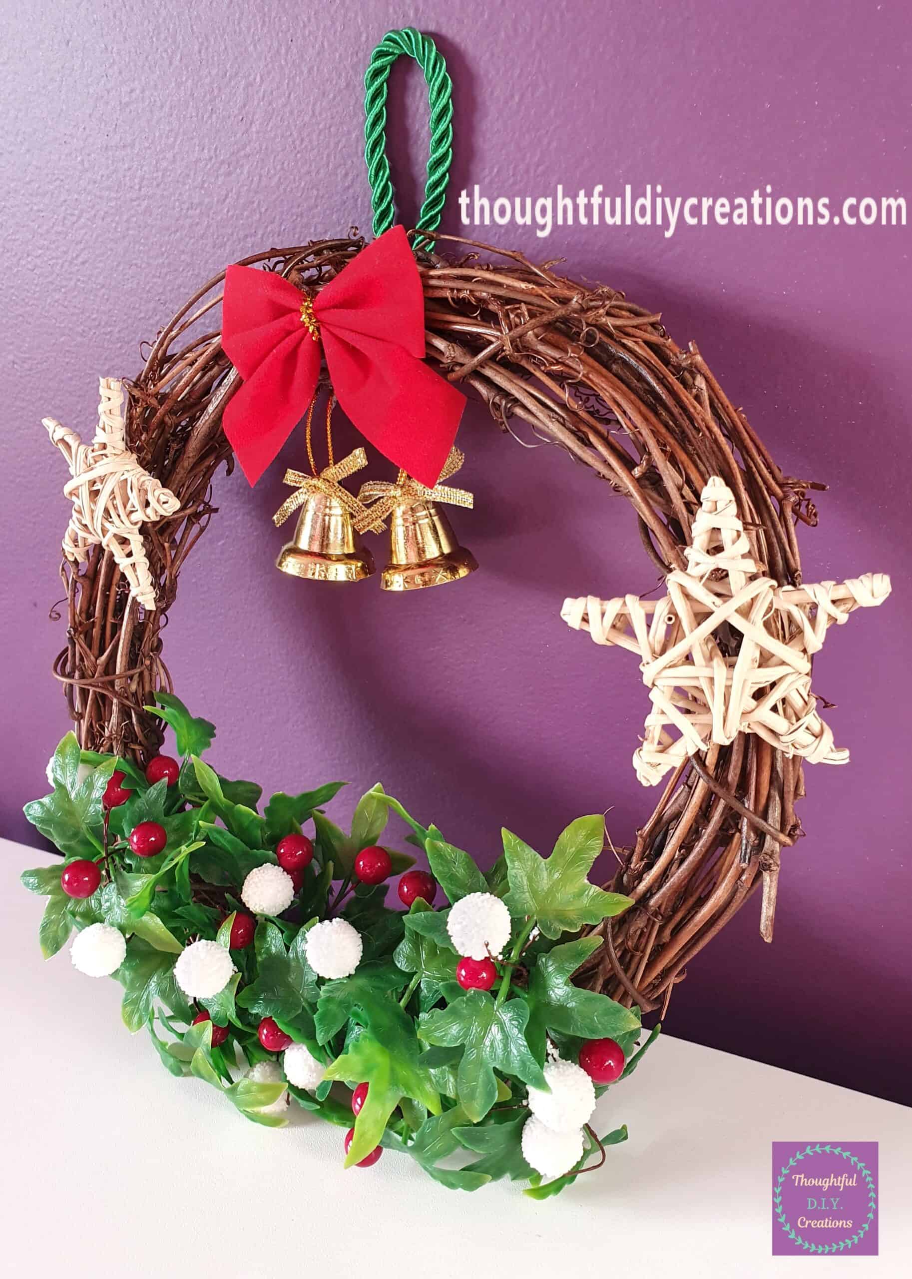 Two Vine Stars; attached to each Side of the Traditional Christmas Wreath.
