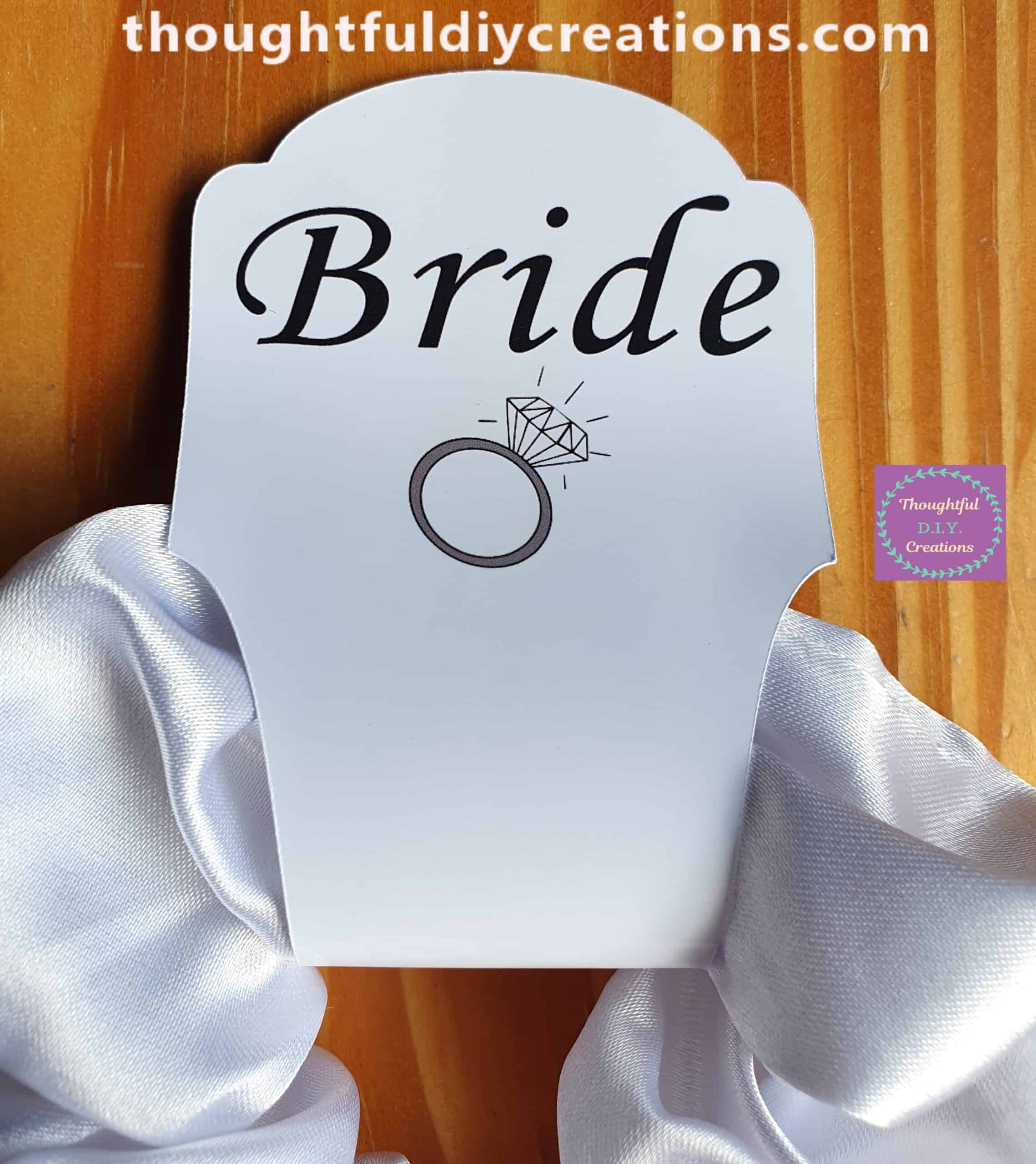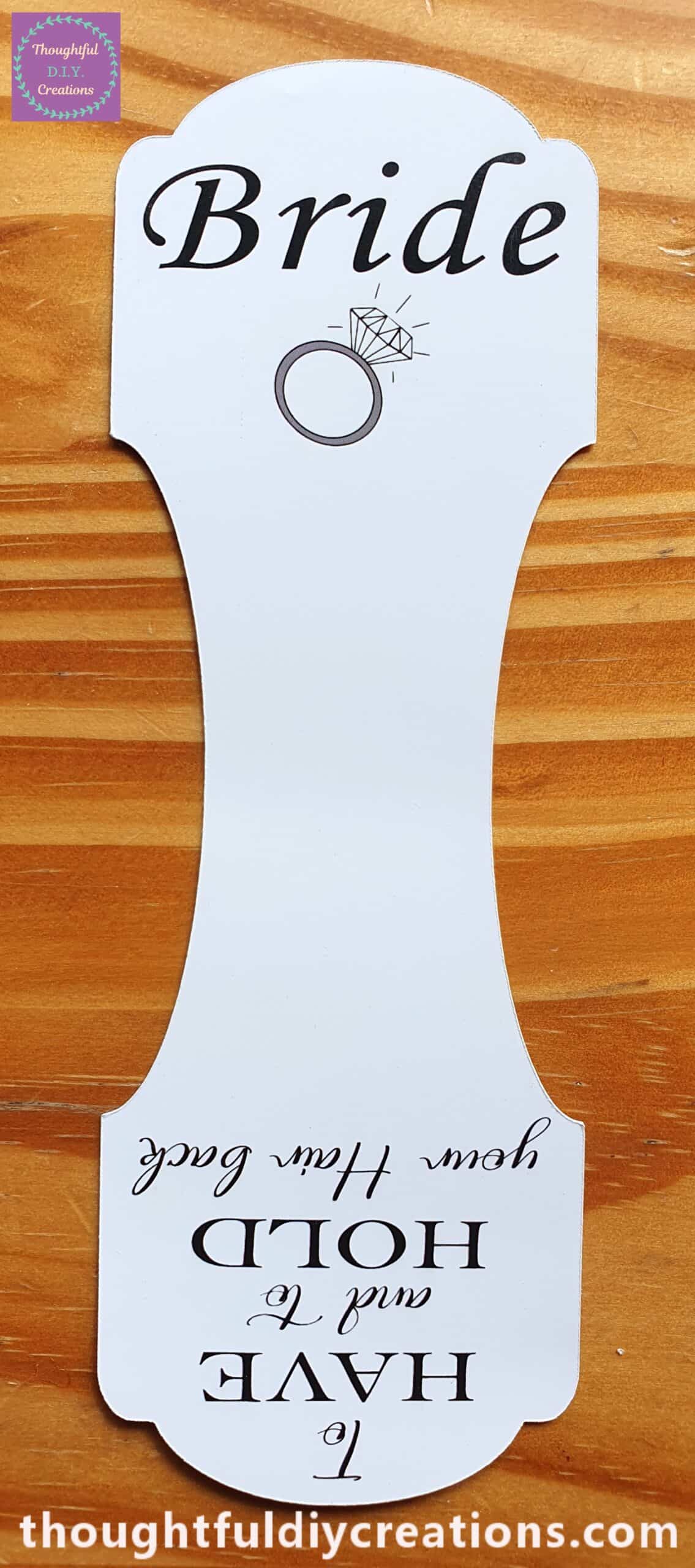 • Gift Tag with “Bride” and an Engagement Ring on the Front of the Tag.