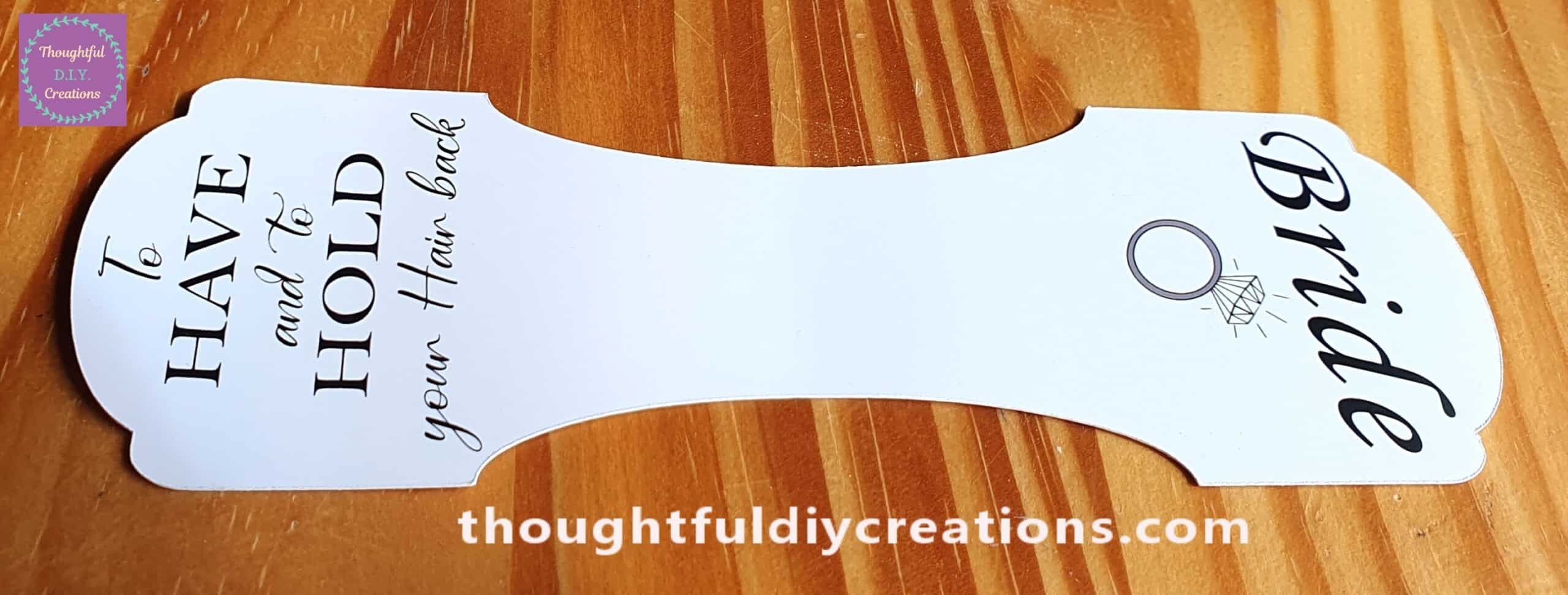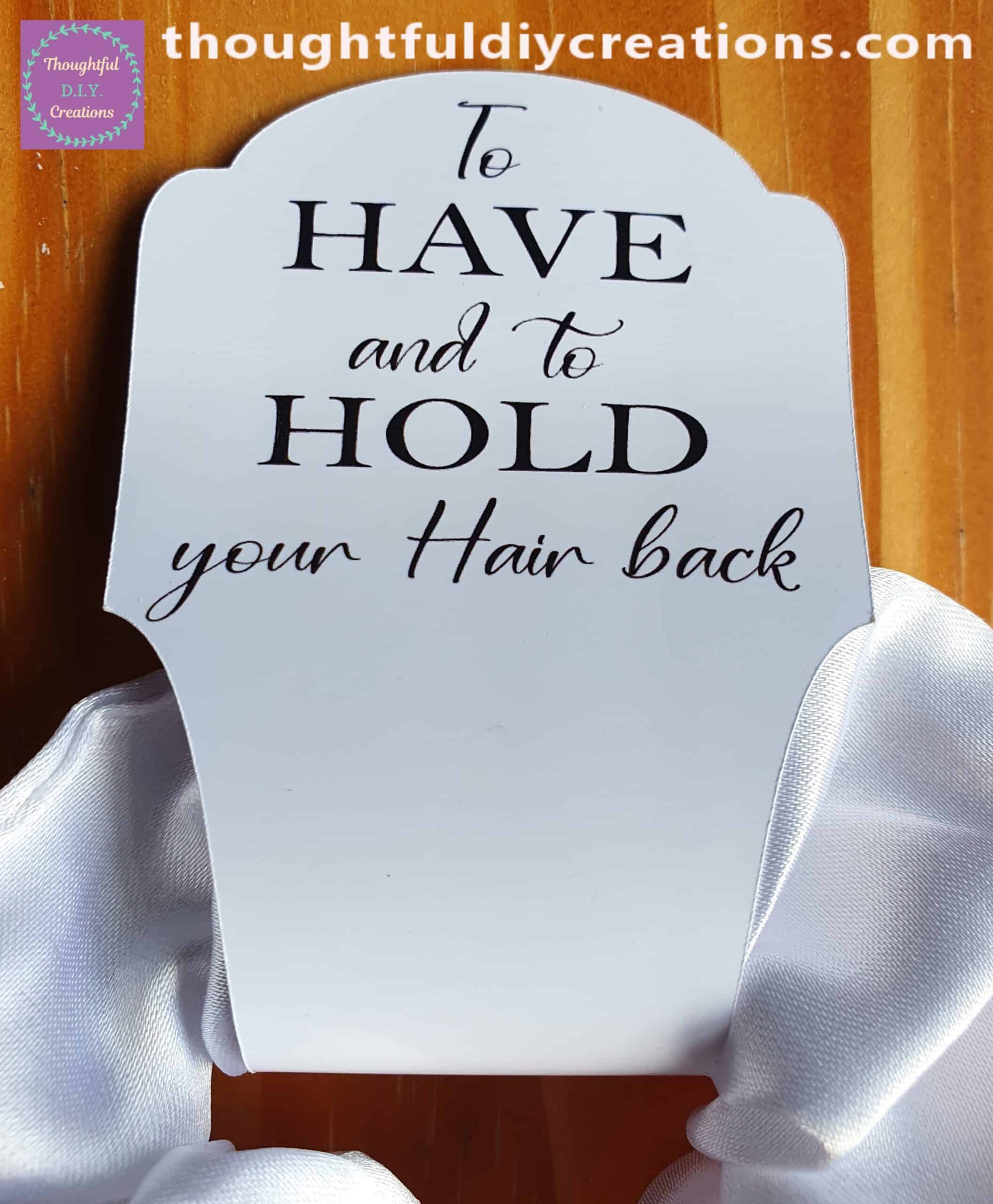 • Phrase “To Have and to Hold your Hair Back” on the Back of the Gift Tag.