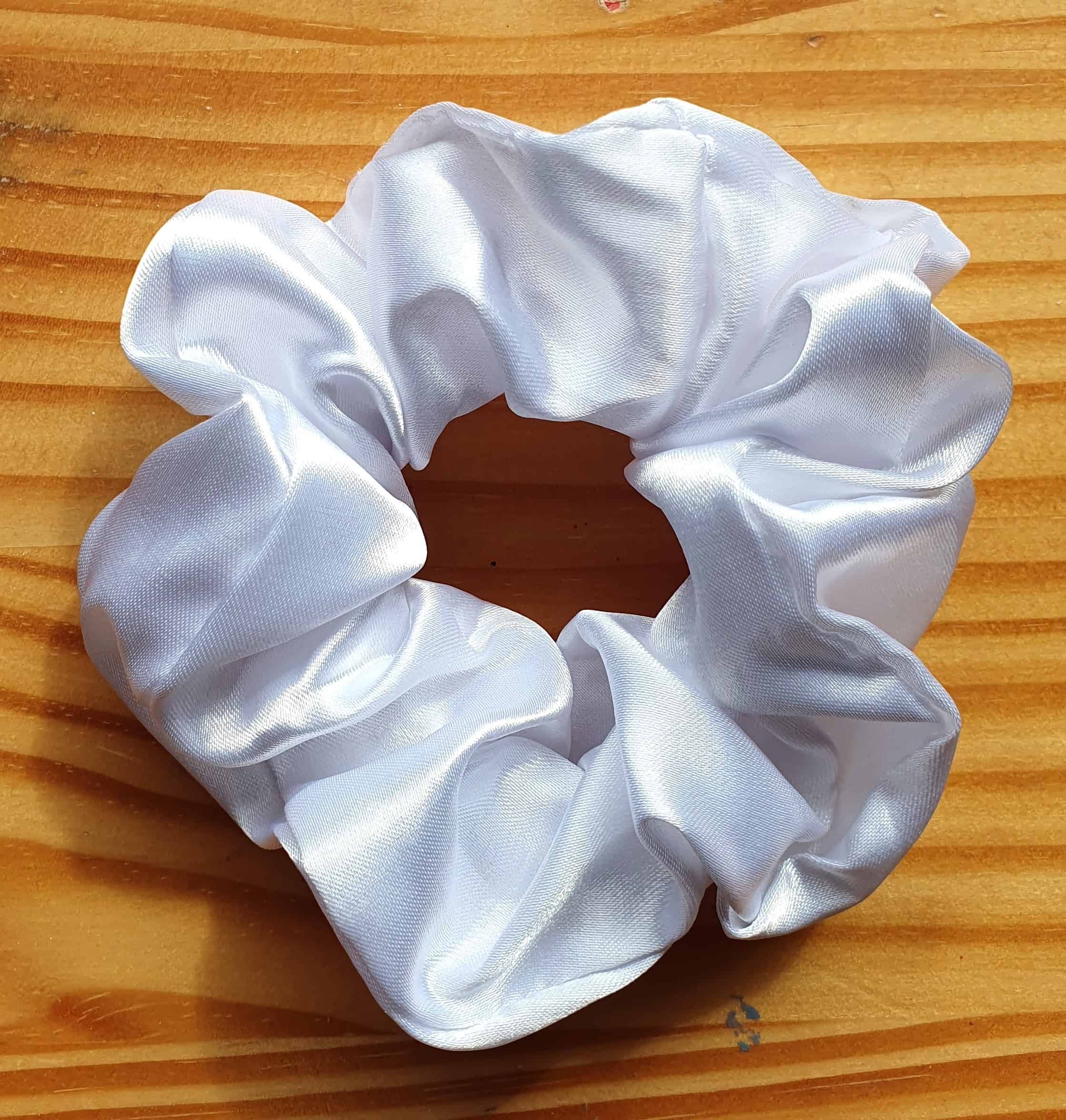 • White Satin Scrunchie.